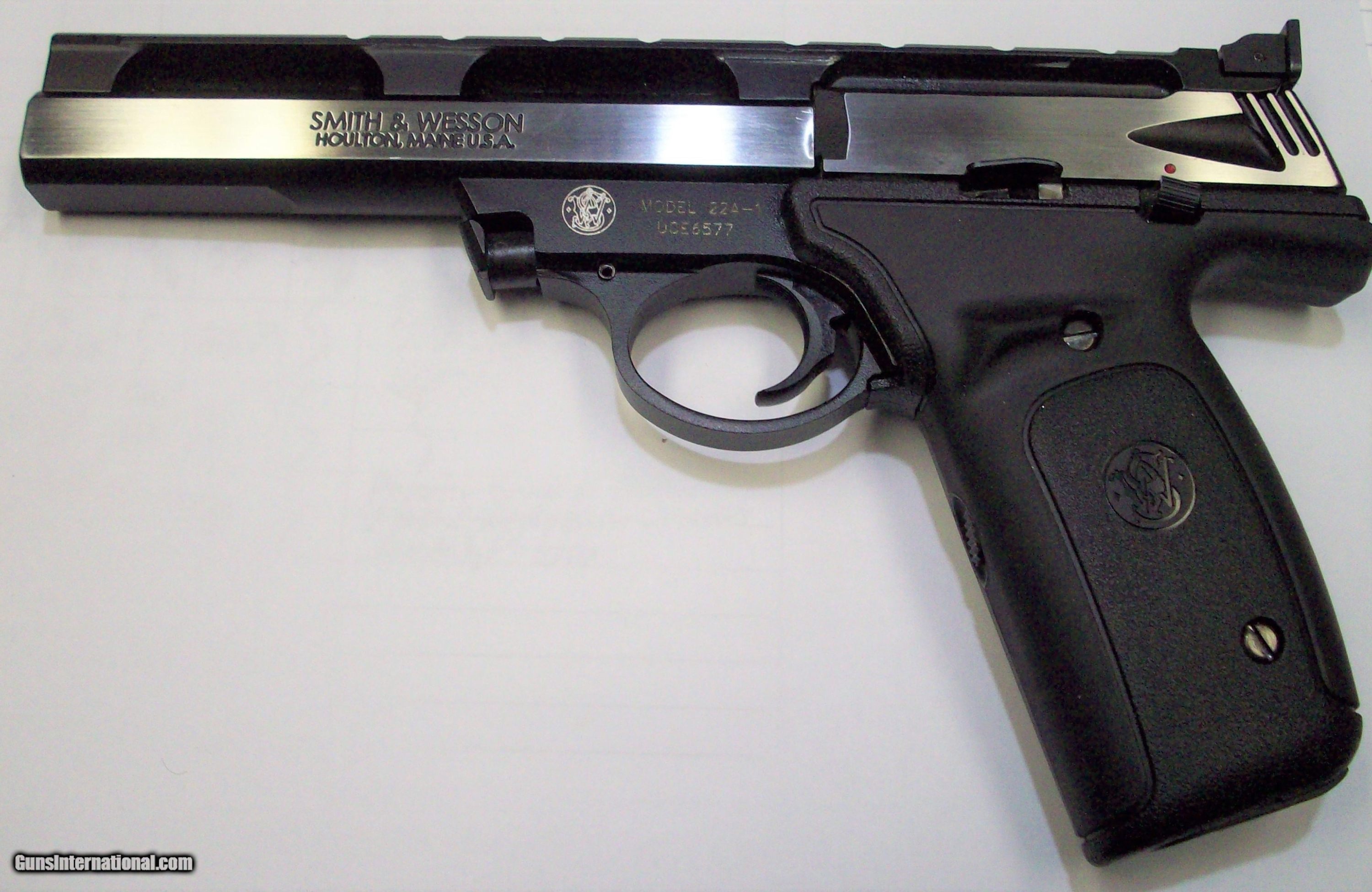 Description: Thiks .22 Cal. pistol is a Smith & Wesson Model 22-A. Two Tone and in PERFECT CONDITION. ADJUSTABLE REAR SIGHTS & HI VIZ FRONT SIGHT. Comes with TWO mags. $350.00. rmgrigolettoyahoo 732 280 8750 SOLD |