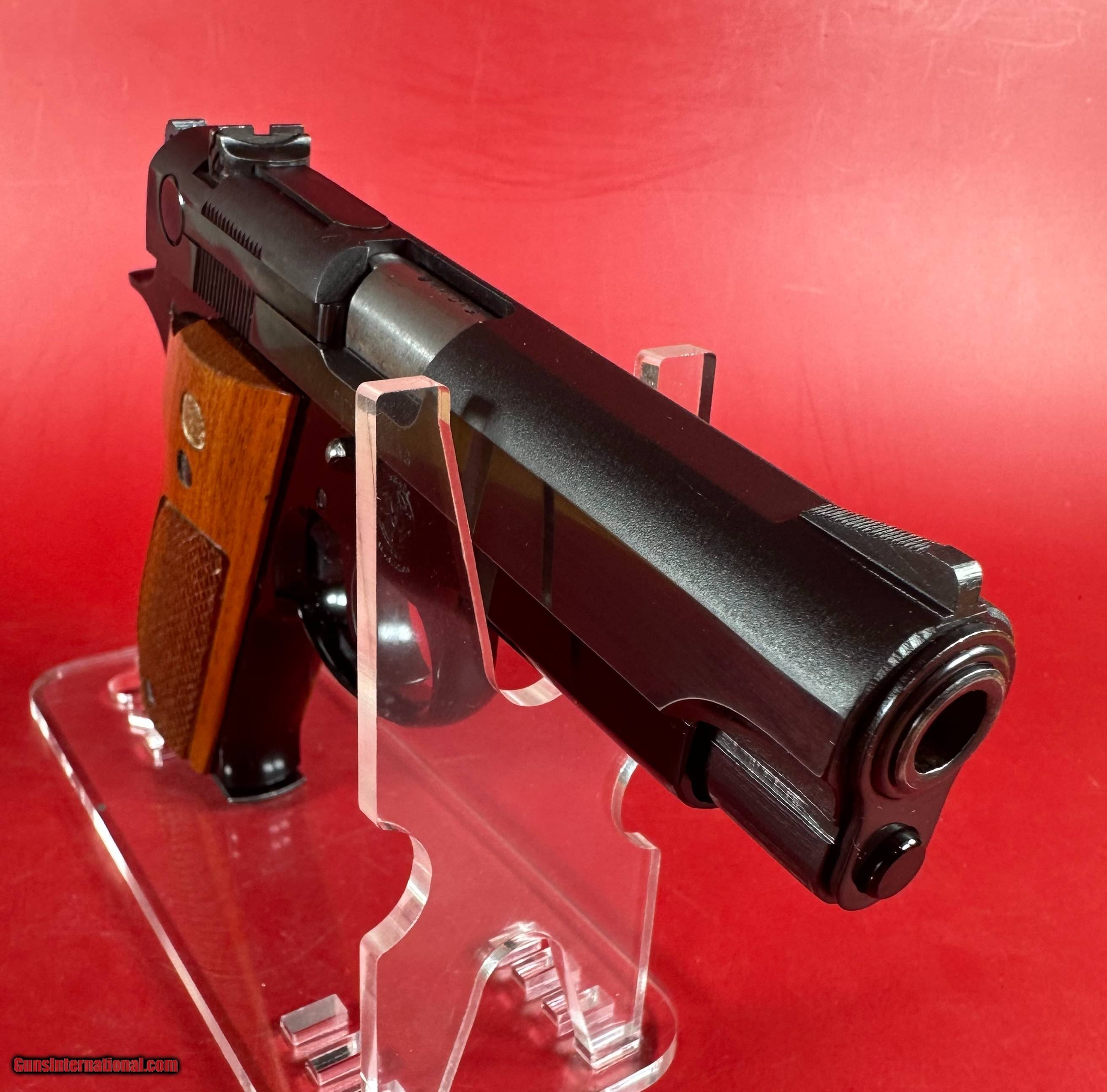 Description: The Smith & Wesson Model 39 is a historic handgun, recognized as the first American-made double-action semi-automatic pistol chambered in 9mm. This is early production of the original model 39 (no dash) with low serial number. This example is in excellent condition. The metal finish is about 98%, grips 99% bore is 99%. The pistol is mechanically sound, make it fantastic option for both collectors and enthusiasts. The sale includes original magazine, box serialized to the gun, manual and other factory paperwork, tools. The Model 39 bridging the gap between traditional designs and the semi-automatic pistols that would dominate the handgun market. Its role in Smith & Wesson’s history and its innovative design make this pistol a valuable addition to any collection. Don't miss your chance to own it! SOLD Handgun Caliber: 9x19mm Parabellum (9mm Luger, 9x19mm NATO) |