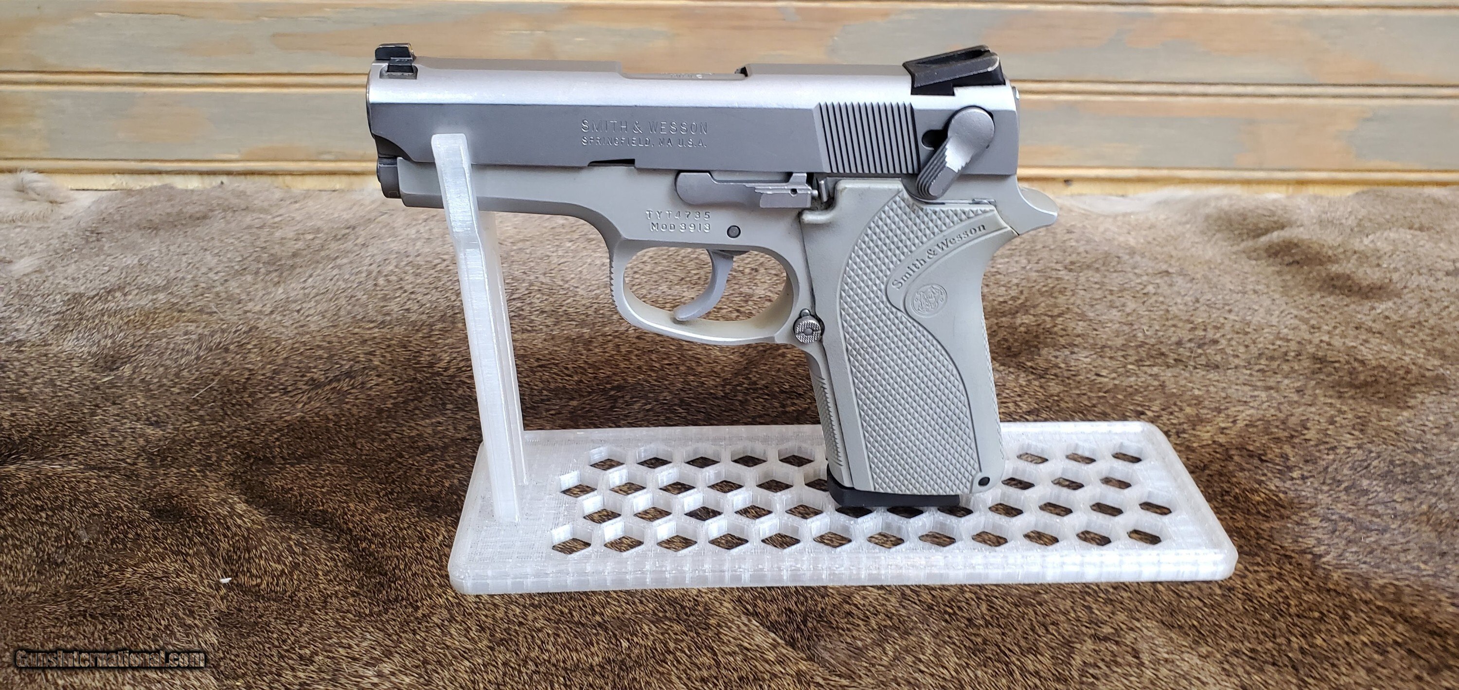 Description: Smith & Wesson Model 3913, "Lady Smith" 9mm 1x 8 rd Magazine SOLD Handgun Caliber: 9x19mm Parabellum (9mm Luger, 9x19mm NATO) Manufacturer: Smith & Wesson Model: 3913 Serial Number: TYT4735 Barrel Length: 3 3/4 Condition: Great |