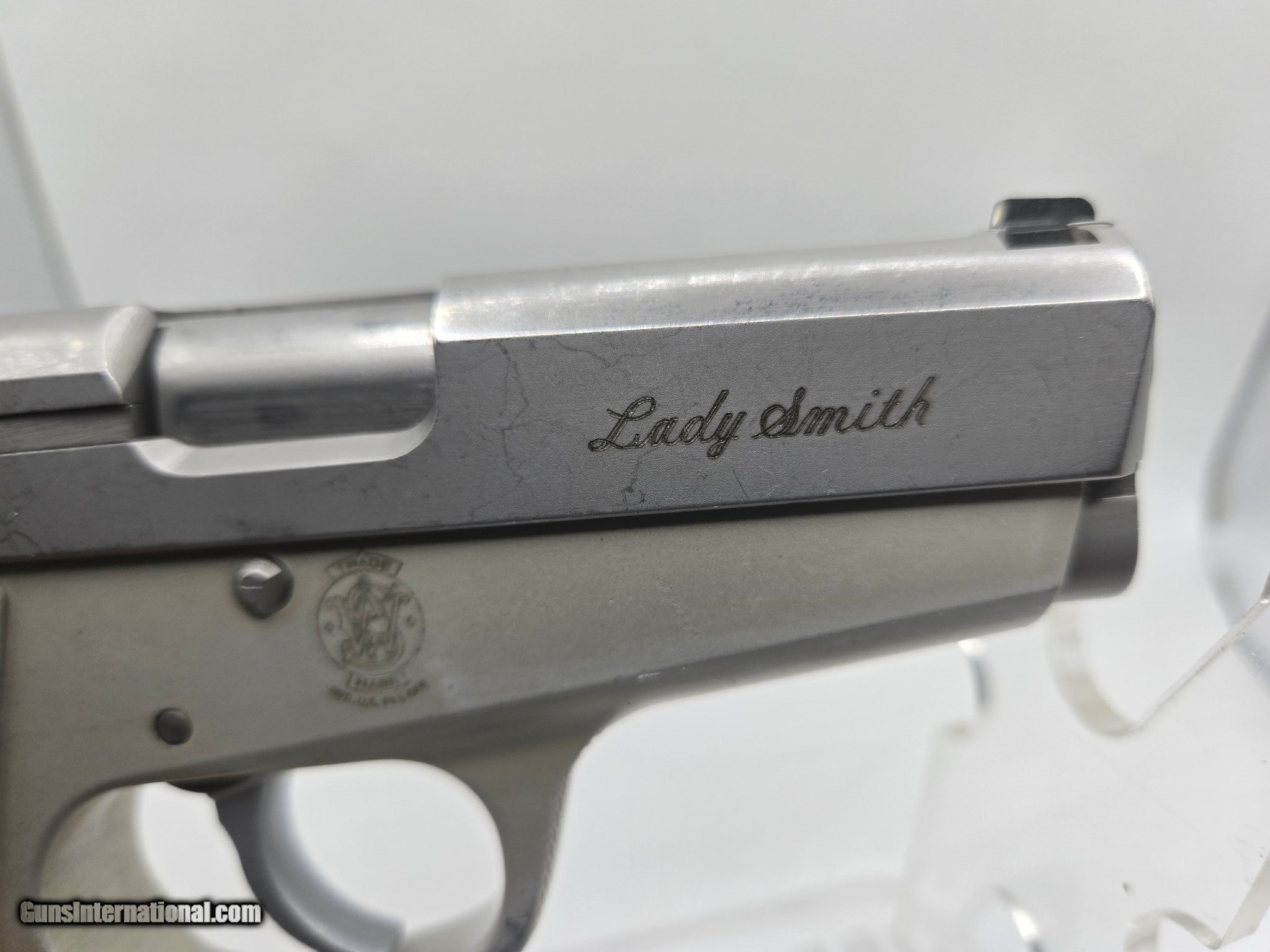 Description: Guns Listing ID: 601473 Here‚s a hard one to find! We have a used Smith & Wesson LadySmith chambered in 9mm for sale. The pistol comes with one 8 round magazine. This handgun fires in single and double action. As many Smith‚s the action is very smooth and consistent. The pistol has honest wear and tear as shown in the pictures and has been given a grade of \"Good\" - 25-60% FINISH REMAINING, STOCKS OR GRIPS MAY BE MARRED, HAVE SCRATCHES, DINGS, ETC., NO CORROSION WHICH WILL INTERFERE WITH PROPER FUNCTIONING, COMPLETE AND IN WORKING CONDITION. The pictures posted show the current condition of the pistol. Manufacturer: SMITH & WESSON Model: Model 3913 LadySmith Caliber Info: 9MM LUGER (9x19 PARA) Condition: Used - Non-Certified Barrels: 3.5" BARREL Action: SEMI AUTOMATIC Finish: matte stainless Price: $449.99 Contact Seller |