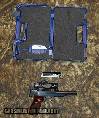 Description: Smith & Wesson model 41 wh 7" barrel, Millet SP02 redot, after market target grips, adjustible target sights, weaver rail, two 10 round mags, less than 100 rounds through this pistol. Cash price shown cc fee add 3%. SOLD Handgun Caliber: .22 Long Rifle Manufacturer: Smith & Wesson Model: 41 Barrel Length: 7 Condition: Excellent Metal Condition: Excellent Wood Condition: excellent Bore Condition: Excellent Sights: Adjustable |