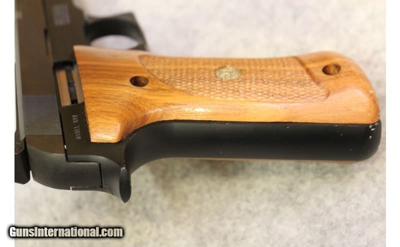 Description: This Smith & Wesson Model 422 chambered in .22 LR features, six inch barrel for long sight radius, aluminum frame for weight reduction, rear target sight, and integral front sight. .22 Long Rifle SOLD Metal Condition: Excellent Wood Condition: Excellent Bore Condition: Bright Barrels: 6 inch Weight: 1.4 lbs. Item Location: Hoffman Estates, IL |