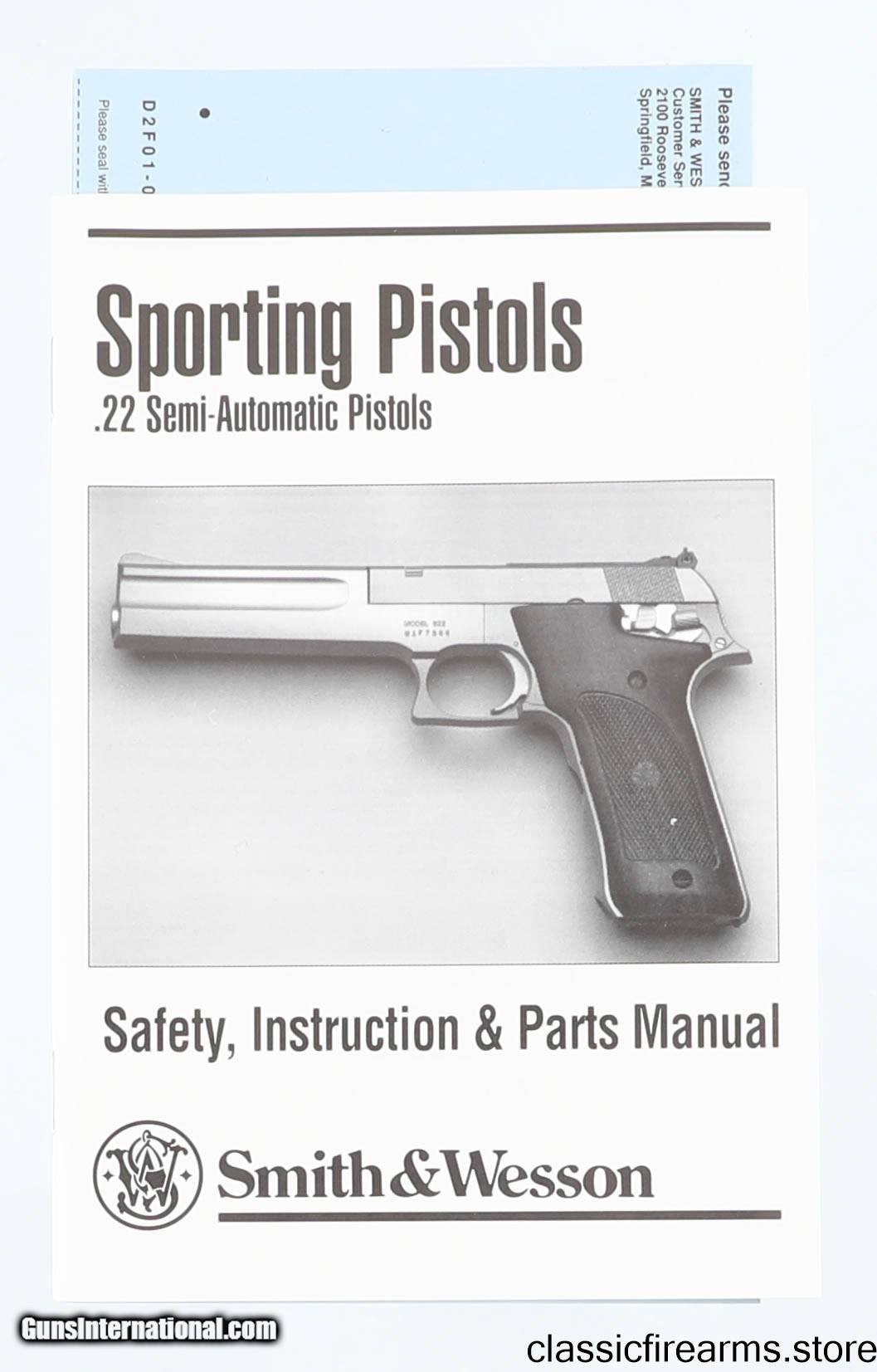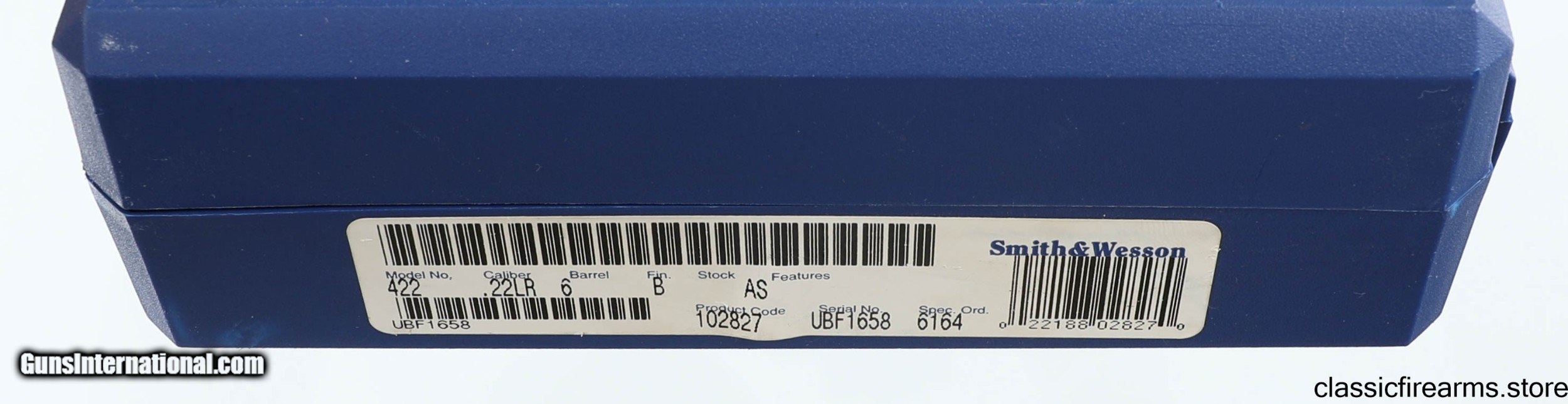 SOLD Handgun Caliber: .22 Long Rifle Manufacturer: SMITH & WESSON Model: 422 Serial Number: UBF16?? Barrel Length: 6 Condition: EXCELLENT |