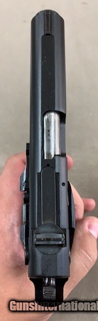 Description: An excellent original example of one of the first Smith & Wesson Hi Capacity Double Column Magazine Pistols they ever produced. First came the Model 39 which was a single column magazine gun and then came the Model 59. Perfect bore and chamber, excellent original finish and original grips and magazine. Does not look as if it has had much use at all. SOLD Handgun Caliber: 9x19mm Parabellum (9mm Luger, 9x19mm NATO) |