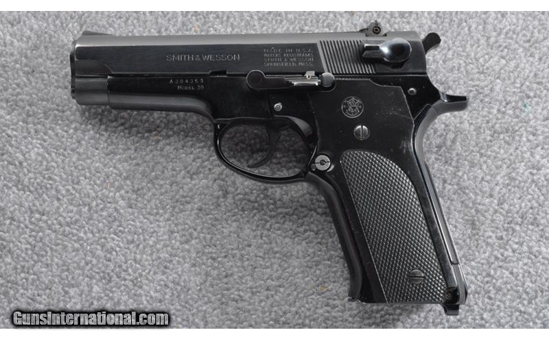 Description: The Smith & Wesson Model 59 was produced from 1971 through 1981 when the improved Model 459 was introduced. The Model 59 was popular in Law Enforcement use during the 70s. 9mm Luger SOLD Chambers: 14 round detachable magazine for 9mm Luger Metal Condition: Very good, showing slight finish wear at the edges. Aluminum frame with steel slide. Wood Condition: Plastic grip panels show a few light scratches Bore Condition: Sharp & bright Barrels: 4" Stainless Triggers: Single/Double Action Weight: 27 oz. Sights: Fixed blade front, Windage adjustable leaf rear Item Location: Grand Junction, CO |
