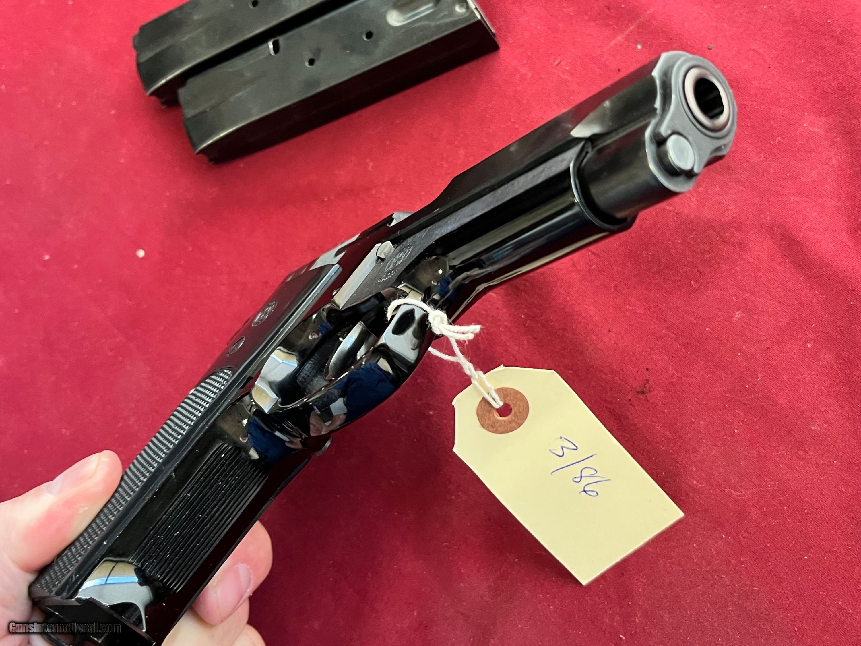 Description: SMITH & WESSON MODEL 59 SEMI AUTO PISTOL. CALIBER 9MM. VERY NICE CONDITION . COMES WITH TWO HI CAP MAGAZINES. EASTERN BRANCH FIREARMS ADD 40.00 SHIPPING – NEXT DAY AIR SHIPPING ADD 50.00 SHIPPING – LONG GUNS GROUND OPTIONAL INSURANCE IS AVAILABLE AT 1.25 PER 100.00 Questions e-mail or call Glen at Eastern Branch Firearms 207-215-5021 TERMS – PLEASE READ BEFORE I DO NOT HAVE A LAYAWAY OPTION ( WE ACCEPT CREDIT CARDS ) -- I GET ALOT OF REQUEST FOR TRADES, I WOULD PERFER NOT TO DO TRADES ON MY INTERNET LISTINGS PAYMENT OPTIONS- We accept money orders, cashier’s checks , bank checks. sorry no personal checks. We accept all major credit cards please add 3% to the ’s cash discount price.(Shipping within the state of Florida - Florida Residents must pay sales tax) .Handguns and long guns do need to be shipped separate. PLEASE do not send payment via FED EX . USPS & UPS are fine. Thank you. We include a signed copy of our FFL with each firearm shipped. SAFTY NOTICE- Buyer is solely responsible for determining that a used gun is safe to shoot. The firearms offered have not been test fired but have been given a visual inspection only for purposes. It is a requirement that every used firearm is inspected by a qualified gunsmith before firing. By , the buyer agrees to hold seller harmless against damages, injury, or death caused by defective merchandise. RETURN POLICY- All firearms come with a 3-day non firing , non messing with ( turning srews ,taking apart,removing parts, scoping. firing, cleaning or messing with in anyway) inspection/return privilege.Inspection is based on a visual review of the gun to confirm the gun is in the condition stated. In the case of a return, buyer pays all shipping charges & if paid for with a credit card buyer absorbs the 3% credit card charges . So please ask questions BEFORE you bid. Thanks for Looking and Good Luck!! U.S. sales only, no exports…this includes antiques. I will ship to third party for exporting SOLD |