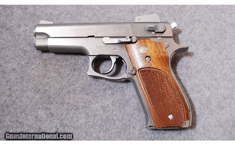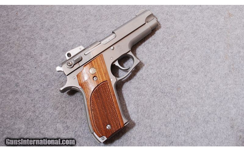 Description: This early example of Smith & Wesson's foray into stainless steel semi-auto pistols is in very good condition. The rifling is sharp and unblemished, and the exterior shows light use. 9mm Luger SOLD Chambers: 9MM Parabellum Metal Condition: "Slight holster wear, some handling marks Wood Condition: Some handling marks Bore Condition: "Shiny, no rust or pitting. Barrels: 4 Triggers: Factory Weight: 2 lbs Sights: "Adjustable Rear, Fixed Ramp Front Item Location: Rapid City, SD |