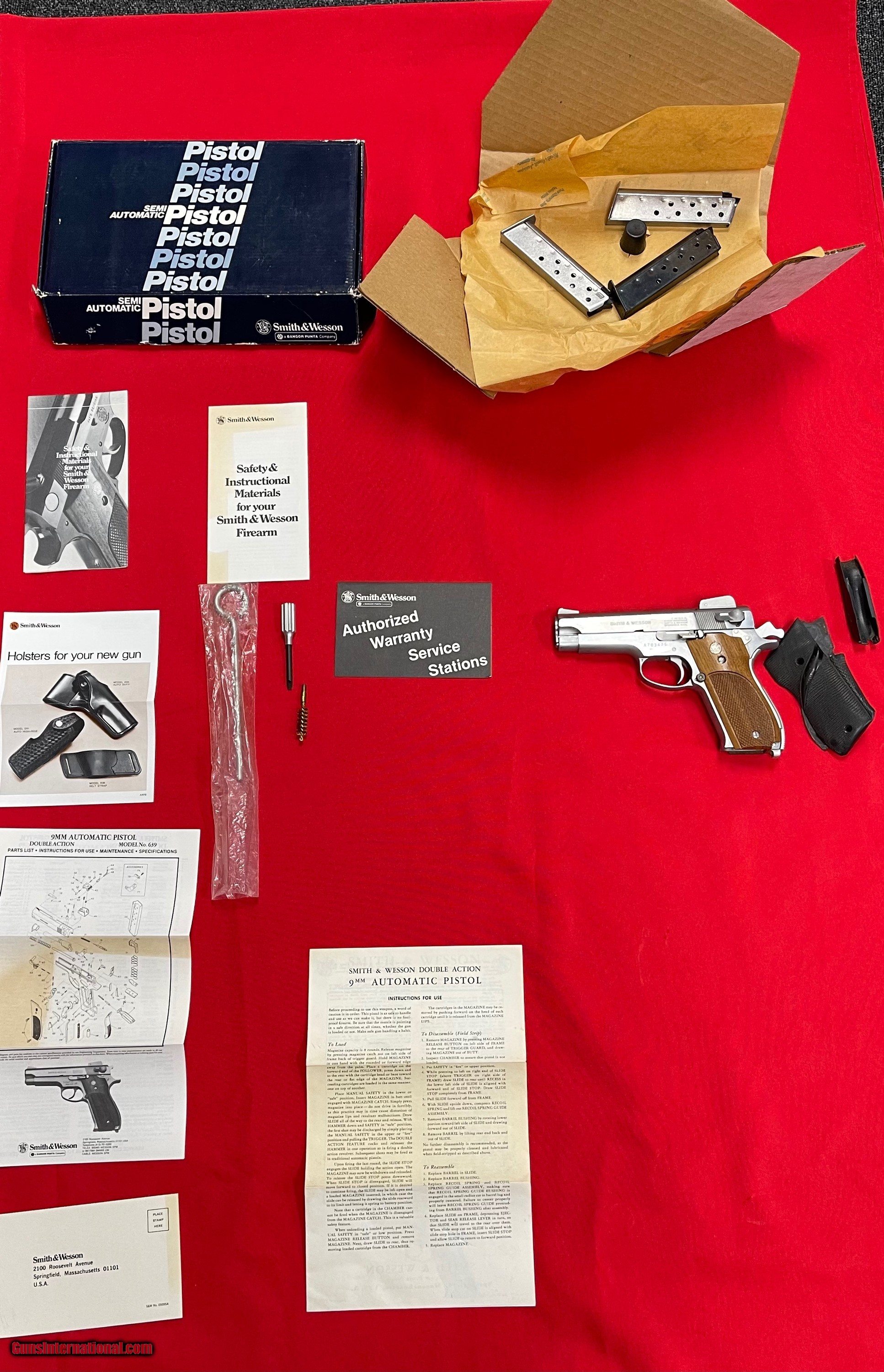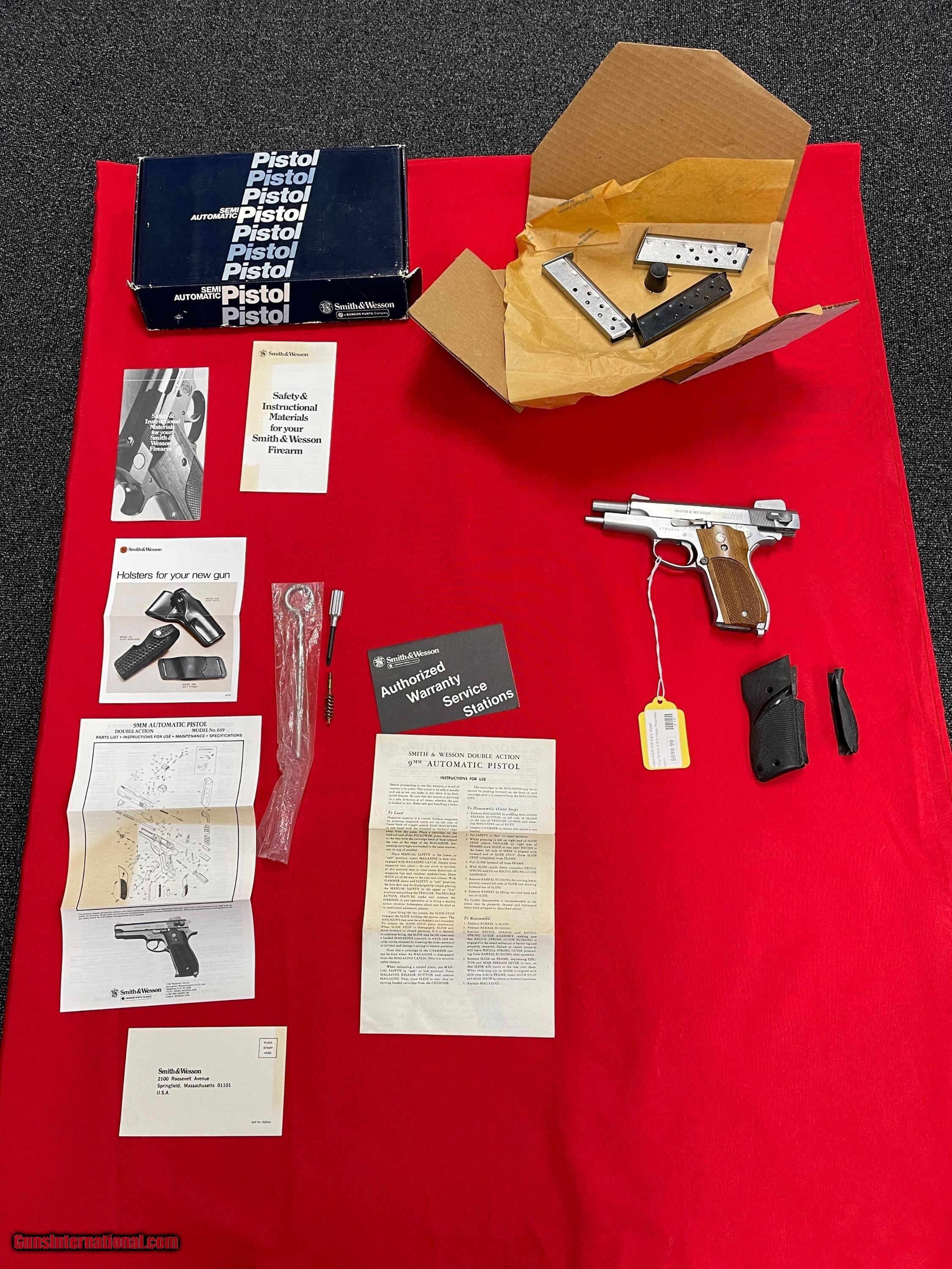 Description: Preowned Smith & Wesson Model 639 Steel frame. Comes with the original box, manuals, cleaning brush and tool , extra grips, 3 Magazines. Does have wear and tear. minor noticeable scratches on the frame could possibly be buffed out. The Smith and Wesson Model 39 was a first-generation semi-automatic pistol developed for the US Army service pistol trials of 1954. After the Army abandoned its search for a new pistol, the Model 39 went on the civilian market in 1955 and was the first of Smith & Wesson's first generation semi-automatic pistols. Used by the Illinois State Police and the US Navy SEALs, it was a groundbreaking pistol for use with the military and law-enforcement agencies. Could be a collector item for some out there since it has all the orignal components Please add $30 for shipping and insurance. Will ship to FFL of your choice. FL Residents must pay 6.5% sales tax. We accept Zelle, Venmo, Cashiers Checks, and credit cards. If you have more questions or want more pictures please ask. Guns 4 Less 239-321-5025 SOLD Handgun Caliber: 9x18mm Police (9mm Ultra) |