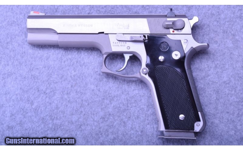 Description: Excellent throughout showing little use. No box. SOLD Manufacturer: S/N TAY7XXX Caliber Info: .45 Auto Metal Condition: Excellent Bore Condition: Excellent Barrels: 5 Triggers: Factory - Smooth Stock: Checkered Black Synthetic Grips Weight: 40 OZ Sights: Red Ramp Front - White Outline Rear Item Location: Wheeling, WV |
