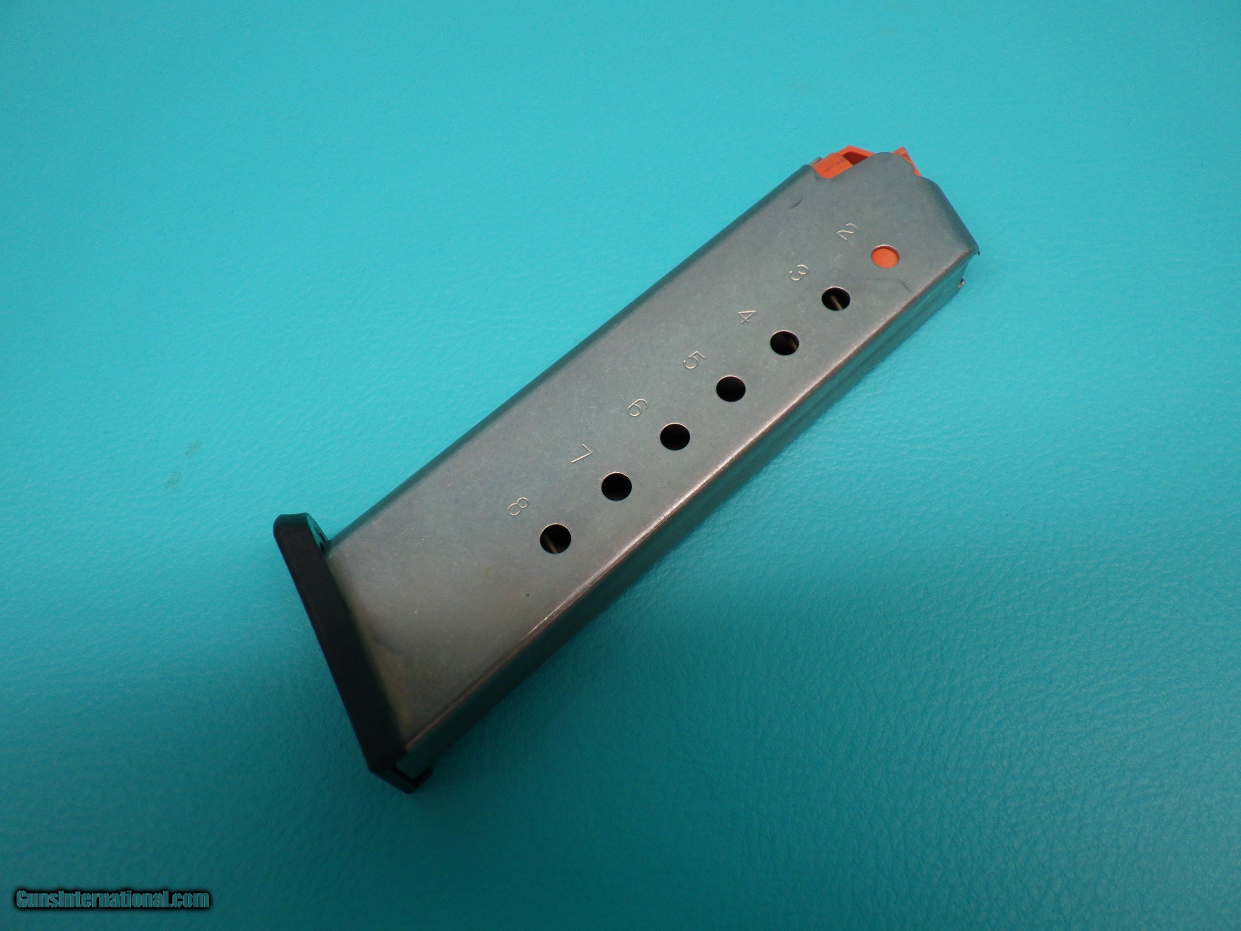 Description: SOLD Smith & Wesson Model 645 .45ACP semi automatic pistol, dated to 1988. This pistol features a full-sized single stack stainless steel frame, matching stainless slide, with black grip panels, ambi safety/decocker, and a red ramp front sight with white outline rear. The pistol is in great working order with a smooth action, a brilliant bore, and only minor finish scuffs in small areas. Please refer to the photos for overall condition. Includes one 8rd magazine. A great collectible and shooter! No handgun sales in MA. Shipping $25.00. SOLD Handgun Caliber: .45 ACP (.45 Auto) Manufacturer: S&W Model: 645 Serial Number: TBR5018 |