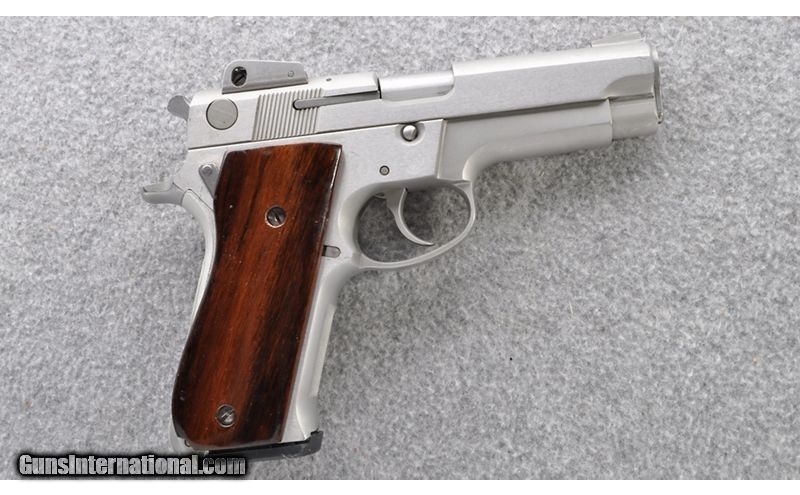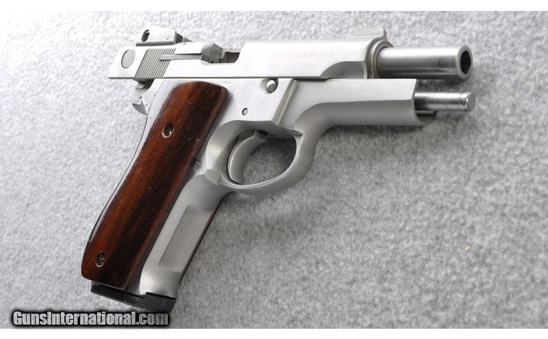 Description: The Smith & Wesson 659 stainless steel pistol is based on the earlier model 59. This early Model 659 has the rounded trigger guard and ambidextrous safety levers with adjustable rear sight. 9mm Luger SOLD Chambers: 9 mm Luger in fifteen round detachable magazines Metal Condition: The stainless steel finish is in superb condition showing only a couple of small marks Wood Condition: The grips are not original to this gun and appear to have been made for the earlier Model 59 with curved back strap. They are however in good condition. Bore Condition: Bright & Sharp rifling Barrels: 4" Stainless Steel Triggers: Double/Single Action Weight: 40 Oz. Sights: "Fixed blade front, adjustable leaf rear Item Location: Grand Junction, CO |