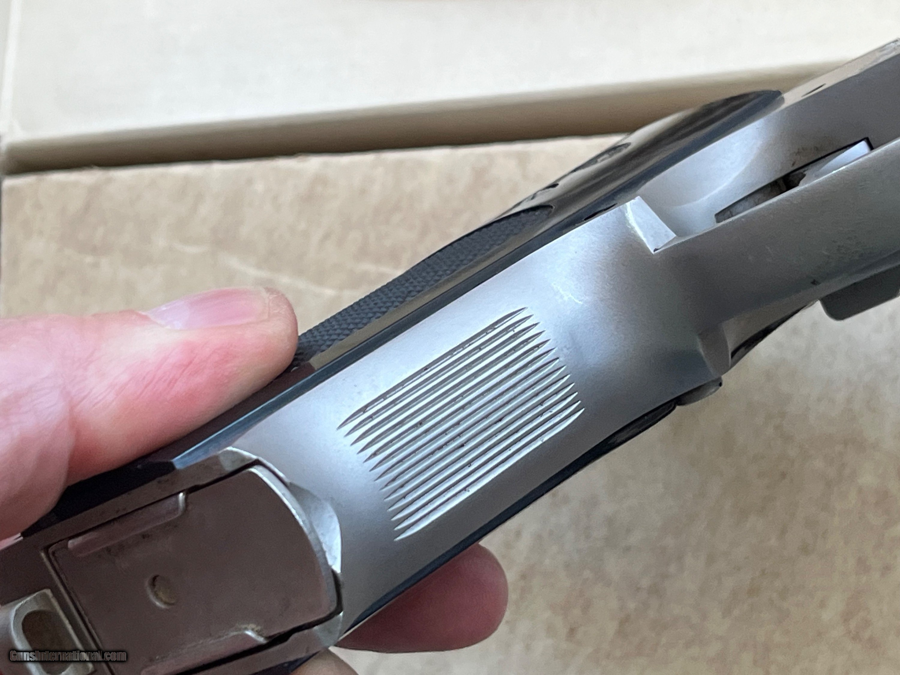 Description: SMITH & WESSON MODEL 659 SEMI AUTO PISTOL. SER# A864402, CALIBER 9MM, STAINLESS FINISH , WINGED ADJUSTABLE REAR SIGHT . VERY GOOD GRIPS. COMES WITH BOX, 2 HI CAP MAGS. TOOLS AND MANUAL. EASTERN BRANCH FIREARMS ADD 40.00 SHIPPING – NEXT DAY AIR SHIPPING ADD 50.00 SHIPPING – LONG GUNS GROUND OPTIONAL INSURANCE IS AVAILABLE AT 1.25 PER 100.00 Questions e-mail or call Glen at Eastern Branch Firearms 207-215-5021 TERMS – PLEASE READ BEFORE I DO NOT HAVE A LAYAWAY OPTION ( WE ACCEPT CREDIT CARDS ) -- I GET ALOT OF REQUEST FOR TRADES, I WOULD PERFER NOT TO DO TRADES ON MY INTERNET LISTINGS PAYMENT OPTIONS- We accept money orders, cashier’s checks , bank checks. sorry no personal checks. We accept all major credit cards please add 3% to the ’s cash discount price.(Shipping within the state of Florida - Florida Residents must pay sales tax) .Handguns and long guns do need to be shipped separate. PLEASE do not send payment via FED EX . USPS & UPS are fine. Thank you. We include a signed copy of our FFL with each firearm shipped. SAFTY NOTICE- Buyer is solely responsible for determining that a used gun is safe to shoot. The firearms offered have not been test fired but have been given a visual inspection only for purposes. It is a requirement that every used firearm is inspected by a qualified gunsmith before firing. By , the buyer agrees to hold seller harmless against damages, injury, or death caused by defective merchandise. RETURN POLICY- All firearms come with a 3-day non firing , non messing with ( turning srews ,taking apart,removing parts, scoping. firing, cleaning or messing with in anyway) inspection/return privilege.Inspection is based on a visual review of the gun to confirm the gun is in the condition stated. In the case of a return, buyer pays all shipping charges & if paid for with a credit card buyer absorbs the 3% credit card charges . So please ask questions BEFORE you bid. Thanks for Looking and Good Luck!! U.S. sales only, no exports…this includes antiques. I will ship to third party for exporting SOLD |