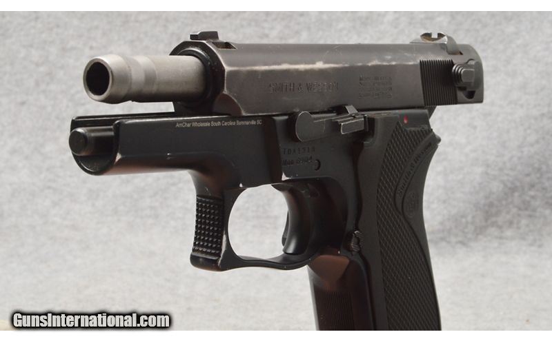 Description: This Smith & Wesson Model 6904 semi auto pistol in 9MM Parabellum is in good condition. The Model 6904 pistol is the compact version of the discontinued Smith & Wesson Model 59. The Model 6904 has the typical SA/DA operation, but with a bobbed hammer that was used in European countries. The blued slide and frame are in good condition, with wear and rub marks on the high edges from European police holster use. The stainless steel 3 1/2" barrel is very good with sharp clear rifling in its bore. This model 6904 pistol does come with an aftermarket Mec-Gar 17 round magazine from police use. This Smith & Wesson pistol does not come with a box or any other accessories. 9mm Parabellum SOLD Metal Condition: Fair/Good Bore Condition: Very Good Barrels: Factory Stainless Steel 3 1/2 Triggers: Factory SA/DA Blue Curved Stock Dimensions: LOP 3 1/2 Weight: 27 oz. Sights: Factory Fixed Front Dot with Rear 2 Dot Item Location: West Chester, OH |