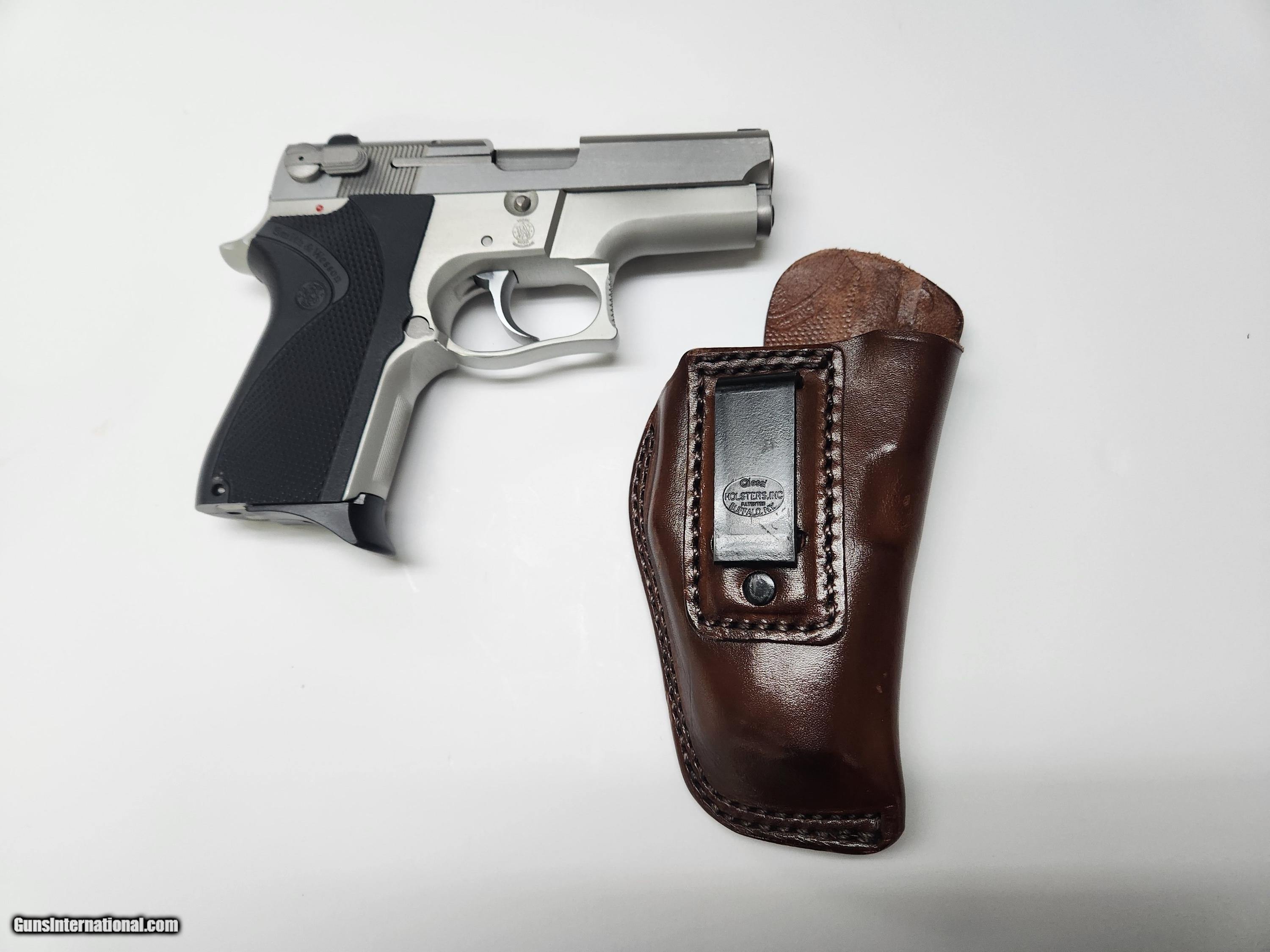 Description: Smith & Wesson Model 6906—9 mm semi-automatic pistol, serial number TCL2038, manufactured in 1989. The pistol was designed to be small enough for easy concealed carry but possesses considerable firepower and they have been used as service weapons. Barrel length is 3.5 inches, weight is 1.66 lbs., it fires from either a 12 or 10 shot double magazine, and the action is DA/SA. The Model 6906 has a stainless-steel slide and a matching color satin-finished aluminum frame with 3-dot sights. This is a one owner pistol purchased new in 1989 as a home defense pistol. Condition is LIKE NEW since it has never been carried and has only been used on the pistol range with perhaps 2-3 boxes of cartridges having been fired. The pistol comes in the original box with instructions and 3 magazines. I will also include an IWB leather holster with purchase. Shipping is $55.00 and firearm must be sent from my FFL to your FFL. Postal Money Orders or Bank Cashiers checks accepted. SOLD Handgun Caliber: 9x19mm Parabellum (9mm Luger, 9x19mm NATO) Manufacturer: SMITH & WESSON Model: 6906 Serial Number: TCL2038 Barrel Length: 3.5 Condition: LIKE NEW Metal Condition: EXC Wood Condition: EXC Bore Condition: EXC |
