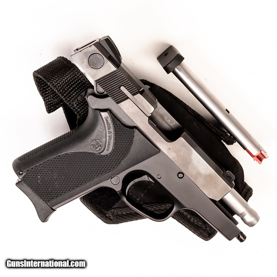 Description: Guns Listing ID: 426861 This Smith & Wesson 908 is a compact semi-automatic handgun with a recoil-operated action. Part of the company‚‚s \"American Pride\" series, this pistol was produced from 1996 to 2007. It is constructed with an aluminum alloy frame, carbon steel barrel, and a wrap-around grip with straight backstrap, and additionally offers a double-action trigger, slide mounted safety, and easy-to-use sights. This Model 908 has a safety de-cocker and a magazine disconnect. It includes two 8-round magazines and an ambidextrous holster that can carry an extra magazine SOLD Manufacturer: SMITH & WESSON Model: MODEL 908 Caliber Info: 9MM LUGER Condition: Used - Certified Barrels: 3.5 BARREL Finish: BLACK |