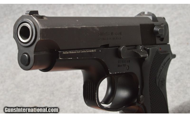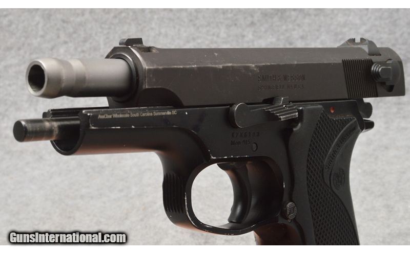 Description: This Smith & Wesson Model 915 semi auto pistol in 9MM Parabellum is in good condition. The Model 915 was part of a value series semi auto pistol that Smith & Wesson made to sell for a lower price. The Model 915 is in the discontinued Model 59 series. The Model 915 was produced from 1992 to 1994, then replaced with the Model 910. The blued slide and frame are good with rub and wear marks from European police holster use. The stainless steel 4" barrel is very good with clear rifling in its bore. The factory black checkered Delrin wrap around hand grip is good. The factory SA/DA trigger is good with a firm crisp release. This Smith & Wesson Model 915 does not come with a box or any other accessories. 9mm Parabellum SOLD Metal Condition: Good Bore Condition: Very Good Barrels: Stainless Steel 4 Triggers: Factory SA/DA Blue Curved Stock Dimensions: LOP 3 1/2 Weight: 29 Oz, Sights: Factory Front Fixed White Dot with Fixed Rear Notch Item Location: West Chester, OH |