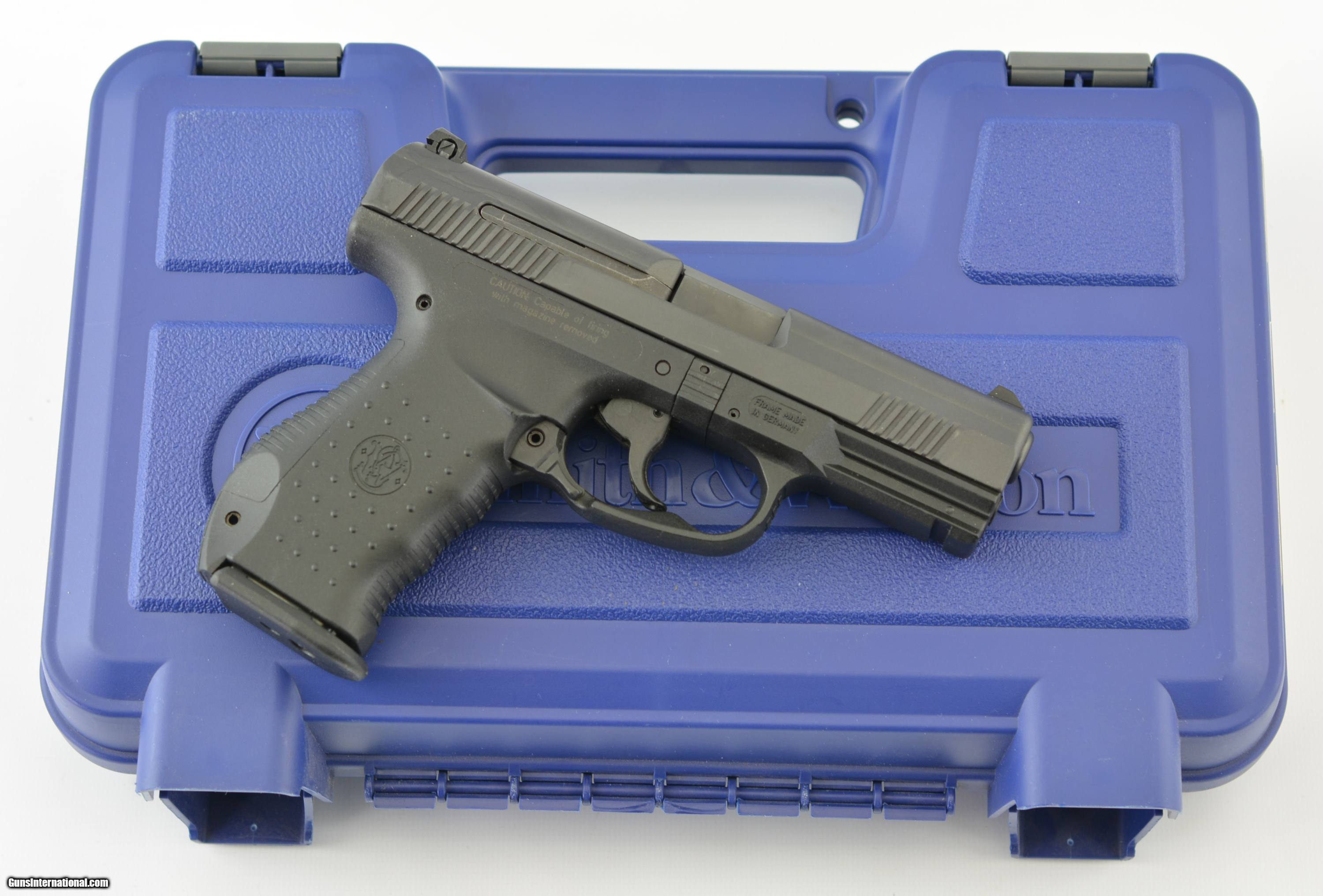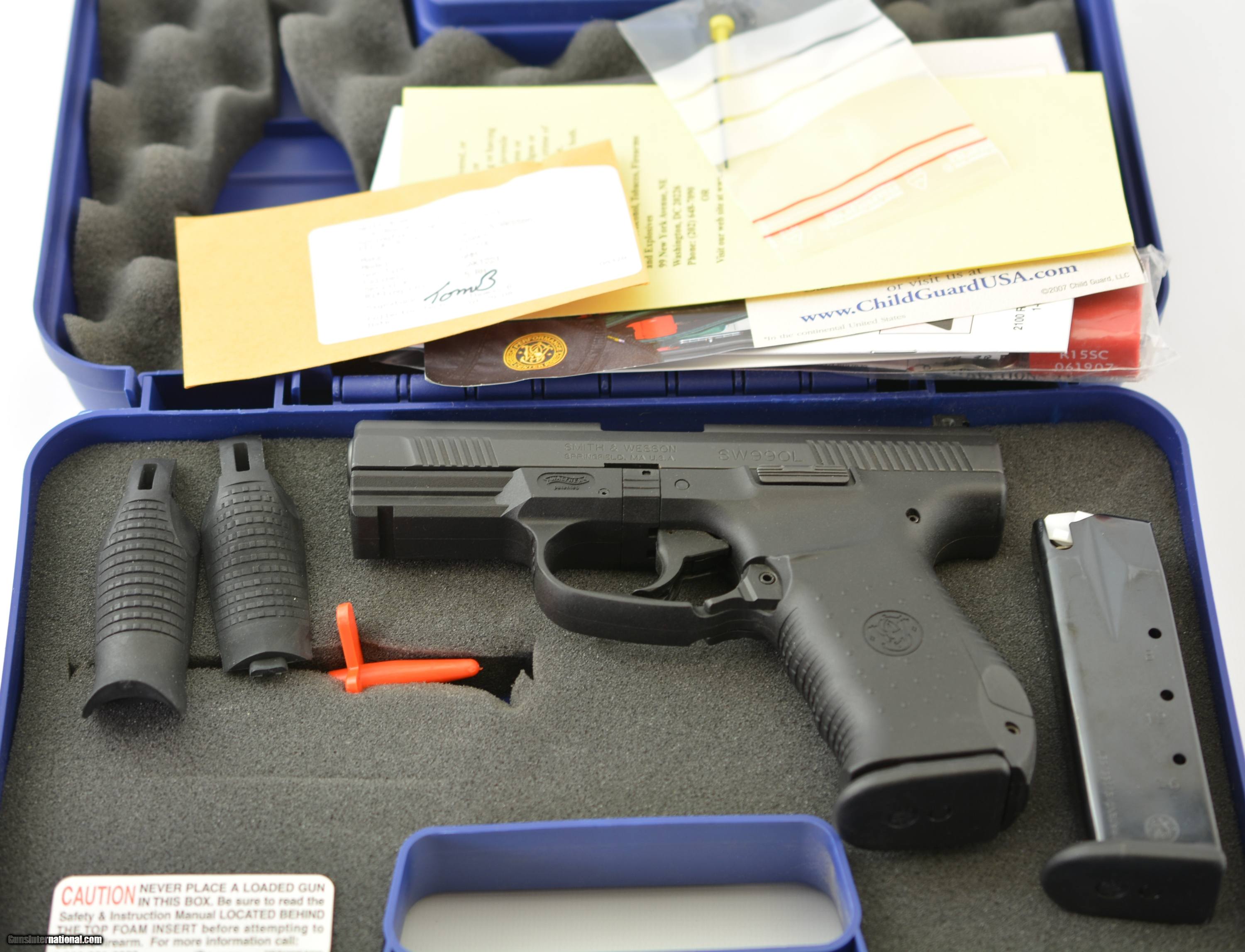Description: Serial# SAK1221, 9mm, 4" barrel with a bright, excellent bore. This is the S&W model SW99OL similar to the Walther P99 and with the polymer frame made in Germany. It has the black stainless Melonite slide and barrel and comes with three replaceable grip swells, two – 16 round magazines, three replacement front sights, disassembly tool, original case, paperwork and lock. The gun is in excellent condition and does not appear to have been fired more than a few times. FFL SOLD Manufacturer: S&W Model: SW99OL Caliber Info: 9mm Gauge Info: 9mm |