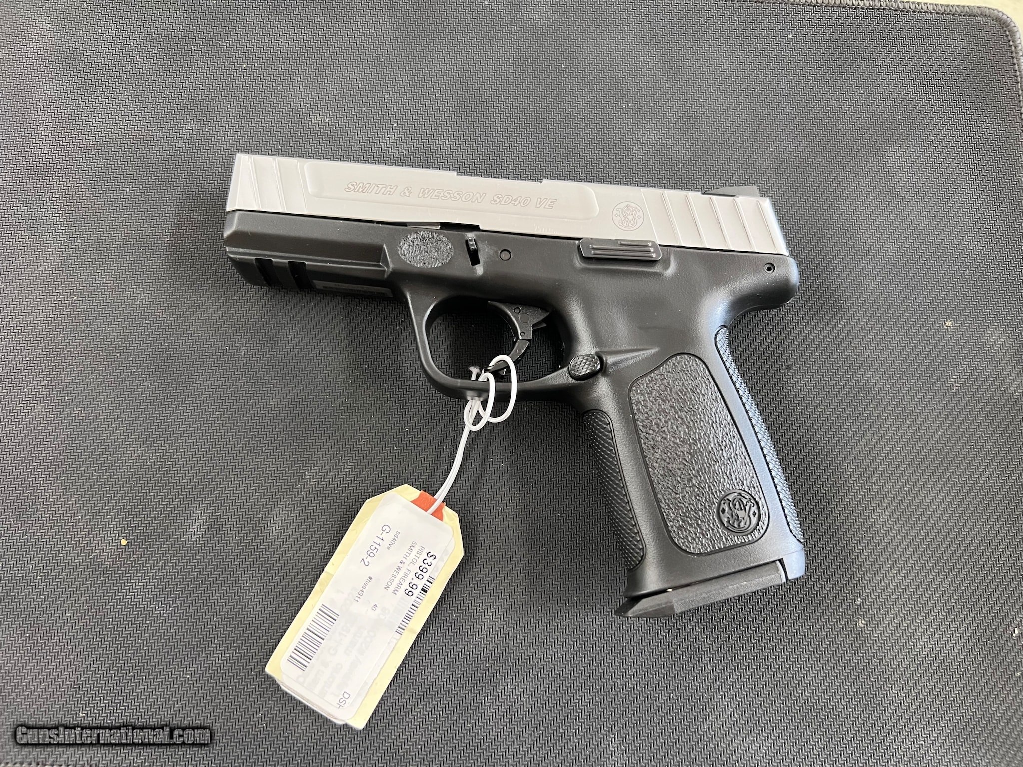 Description: Guns Listing ID: 845056 Designed for concealed carry and home defense, Smith & Wesson® SD40 VE Semi-Auto Pistol operates with a striker-fired action (no external hammer) that‚‚s activated with a 2-piece Self Defense Trigger for consistent pull. This pistol has a distinctive two-tone look with a polymer frame and contrasting stainless steel slide. Aiming is easy with a white dot front and dual white dot rear sight. The textured grip aids with control. A standard Picatinny rail under the muzzle and built into the frame allows easy accessory attachment. Other desirable features found on this S&W SD40 pistol are aggressive front and backstrap texturing on the grip, front and rear serrations on the slide to aid with operation, and a textured finger locator on the side of the frame above the trigger. Striker-fired action 2-piece Self Defense Trigger White dot front and dual white dot rear sight Standard Picatinny rail Aggressive front and backstrap texturing Textured finger locator on fram SOLD Manufacturer: SMITH & WESSON Model: SD40VE Caliber Info: .40 S&W Condition: Used - Non-Certified Barrels: 5 BARREL Finish: BLACK & GREY |
