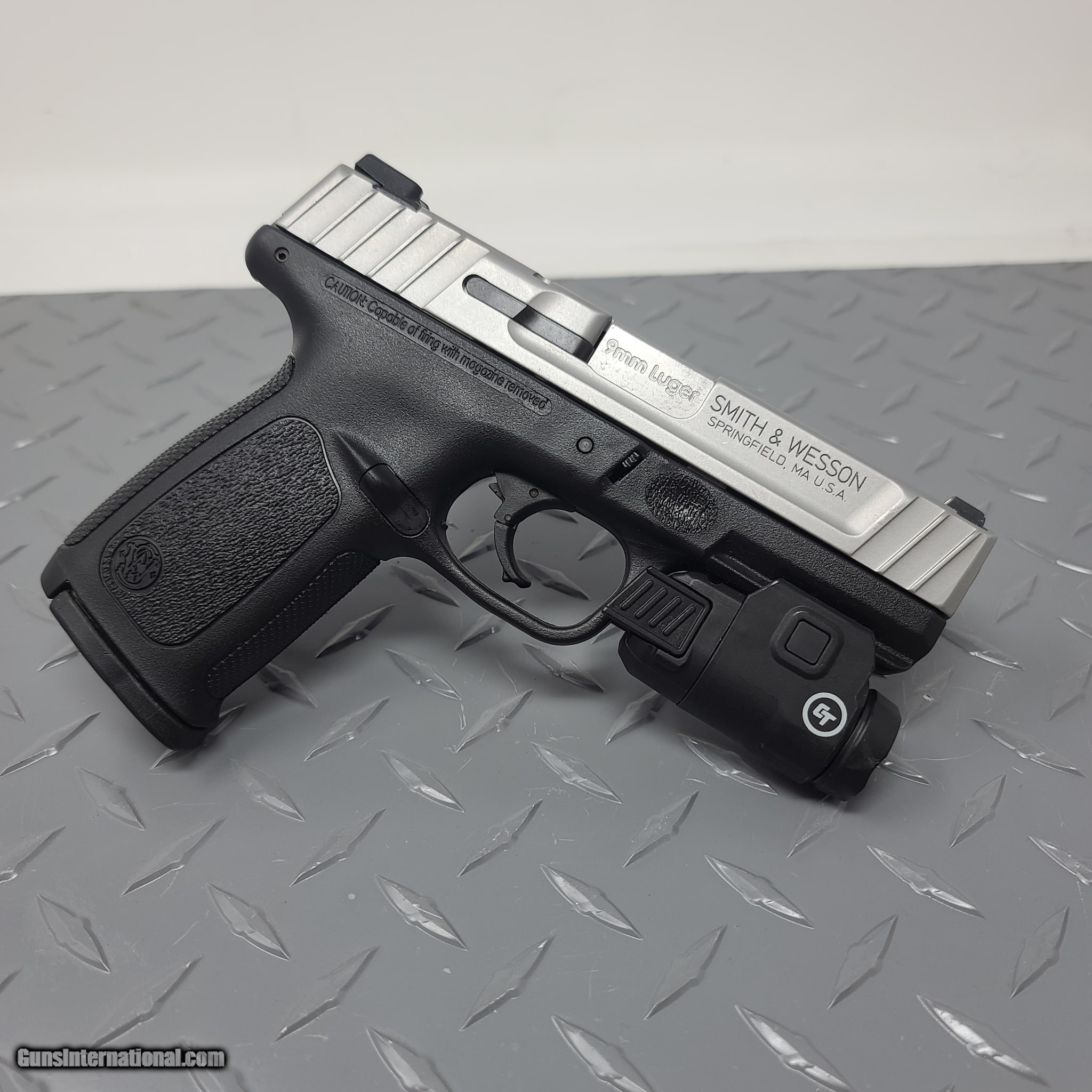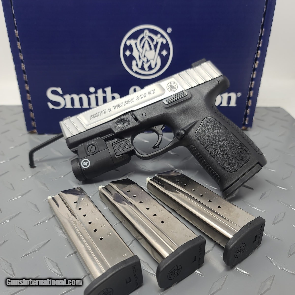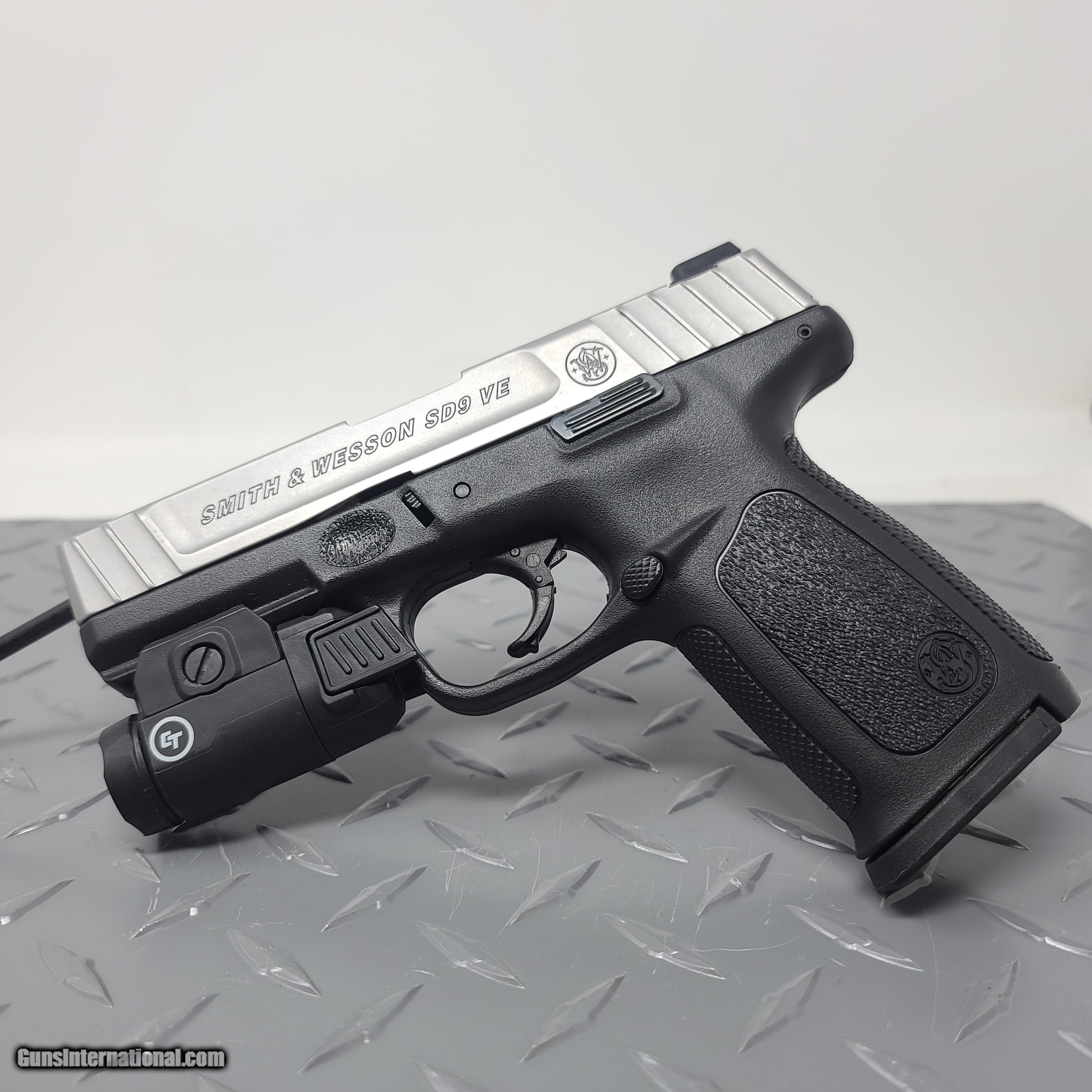 Description: Guns Listing ID: 504015 Used SMITH AND WESSON SD9VE with original box, total of four magazines, Crimson Trace rail light, and original paperwork. This firearm has light wear from general use. SOLD Manufacturer: SMITH & WESSON Model: sd9ve crimson trace rail light 13050 Caliber Info: 9 MM Condition: Used - Non-Certified Barrels: 4 BARREL Finish: TWO-TONE |