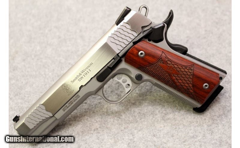 Description: This SW1911 chambered in .45 Auto features, steel construction, front serrations, 3-dot white sights, extended thumb safety, extended beaver tail, and S&W walnut checkered grips. .45 ACP SOLD Metal Condition: Excellent Bore Condition: Bright Barrels: 5 inch Weight: 2.3 lbs. Item Location: Hoffman Estates, IL |