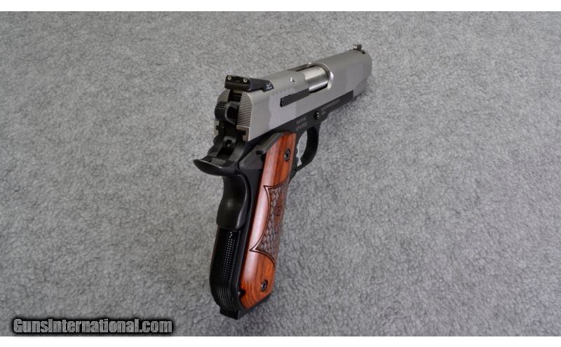 Description: Round butt on scandiun alloy frame. Two-tone E-Series with satin stainless. All-purpose, great for competition, concealed carry or home protection. SOLD Caliber Info: .45 Auto Metal Condition: Excellent. Looks like new. Wood Condition: Excellent. Bore Condition: Excellent. Barrels: 4.25 Inch Triggers: Skeletonized and grooved Stock: Wooden laminated E-Series grips Weight: 2 Pound Sights: Tritium night sights Item Location: Springfield, OR |