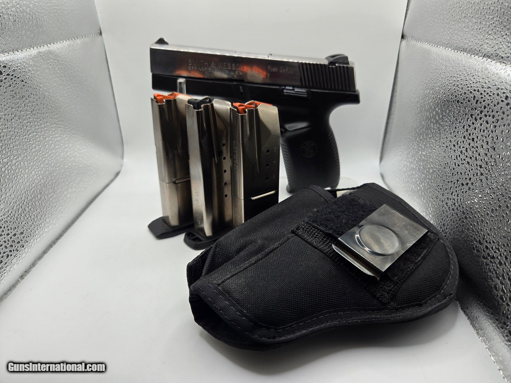 Description: Guns Listing ID: 507412 We have a used Smith and Wesson SW40V chambered in 40 caliber. The pistol comes with three magazines, one 14 rounder and two 10 rounders and a nylon holster. The pistol has been function tested and it is in operating condition. The slide has been custom polished for a mirror reflection stainless steel which gives it a beautiful custom finish look. This gun has no major defects or blemishes other than normal wear and tear with moderate scratches etc. No original box. SOLD Manufacturer: SMITH & WESSON Model: sw40v Caliber Info: .40 CALIBER Condition: Used - Non-Certified Barrels: 4 Action: SEMI AUTOMATIC Finish: polished stainless |
