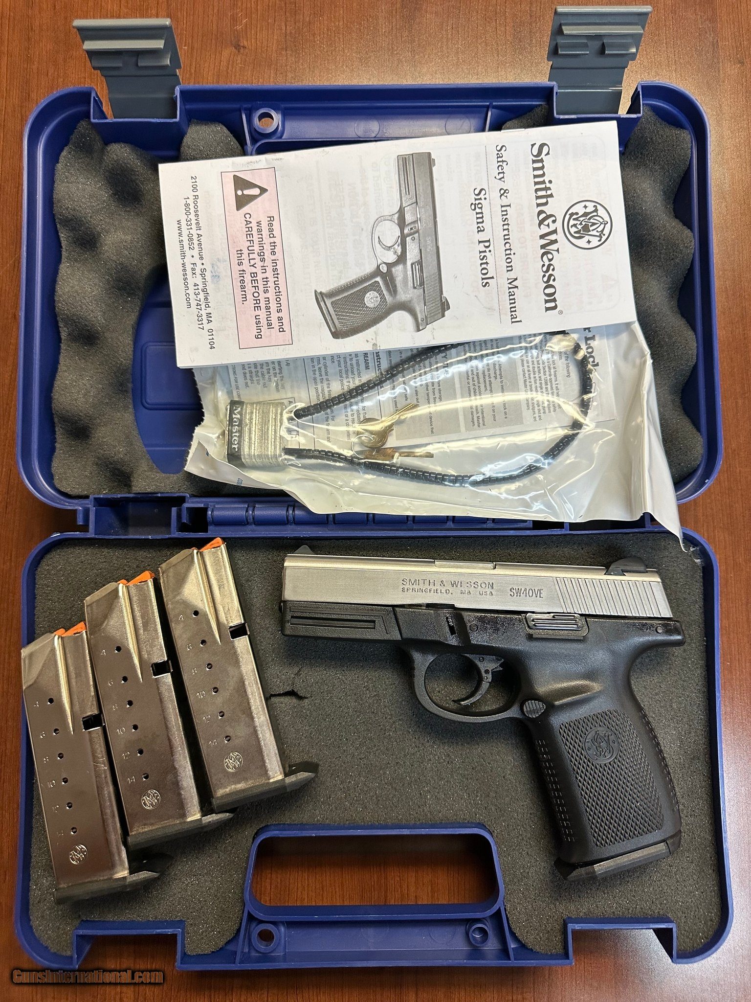 Description: Guns Listing ID: 464125 Smith & Wesson SW40VE Sigma pistol chambered in .40 S&W. In original manufacturers case. Includes 4 13RND magazines and Safety& Instruction manual. Gun is in good condition with minimal wear and tear. SOLD Manufacturer: SMITH & WESSON Model: SW40VE Caliber Info: .40 S&W Condition: Used - Non-Certified Barrels: 4 BARREL Action: DOUBLE ACTION |