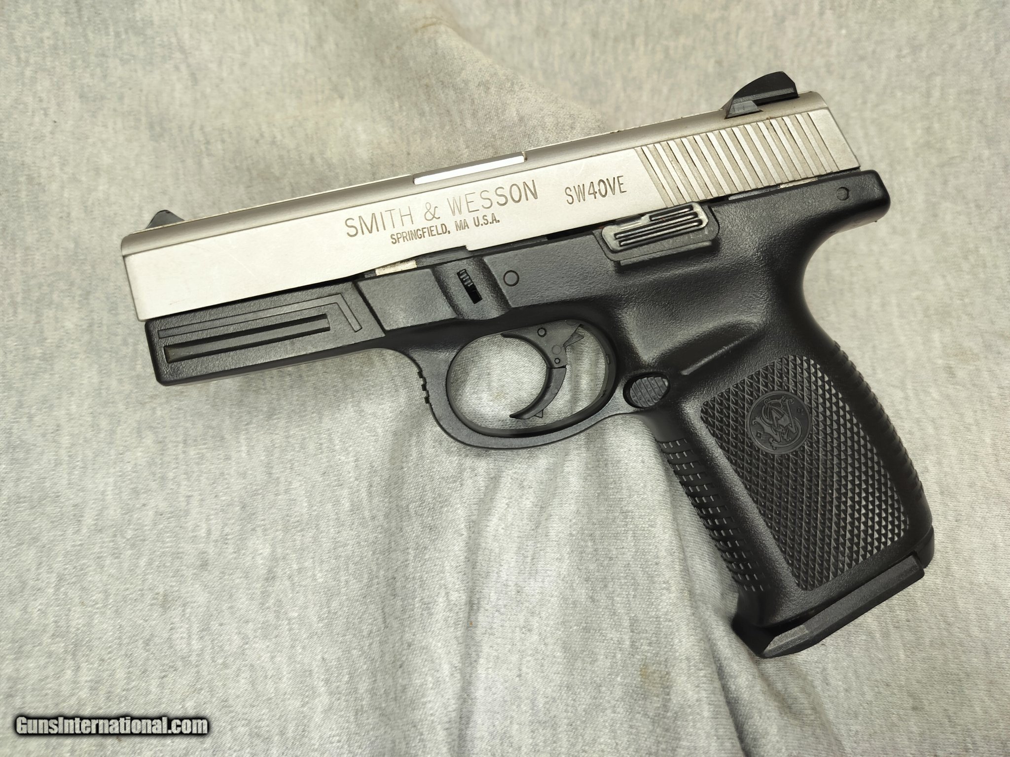 Description: Guns Listing ID: 582516 1-10 RND MAG, NO BOX SOLD Manufacturer: SMITH & WESSON Model: SW40VE Caliber Info: .40 S&W Condition: Used - Non-Certified Barrels: 4" BARREL Action: SEMI AUTOMATIC Finish: stainless steel |