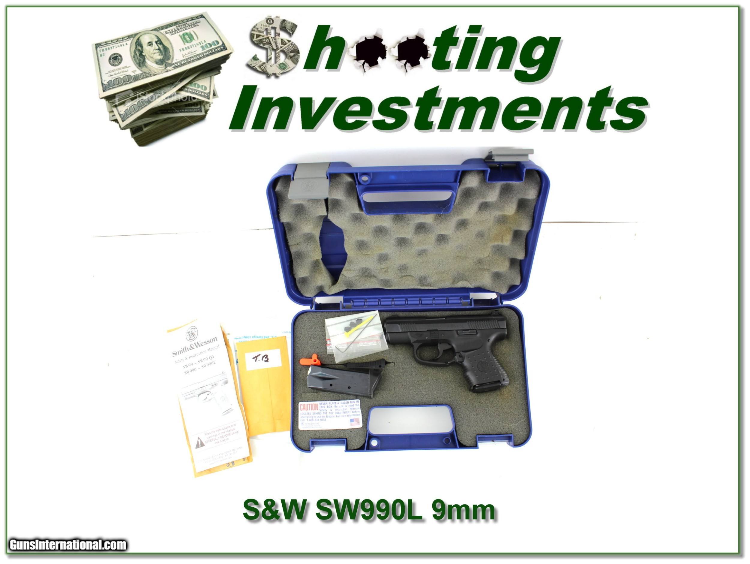 Description: This is a like new in the case and I think unfired Smith & Wesson SW990L Compact with 3.5in barrel 9mm. It comes as seen in case with 2 magazines and all papers. I am selling this one on consignment and as such lay-a-way can’t be used. It does of course have the standard 3-day inspection. Shipping and insurance is $49. Please email me with any questions or larger pictures. (Consign your quality firearms with Shooting Investments for only 12%! Let me know if you have any you would like to sell!) 21-0566 Payment: Payment is by Money Order, Cashiers Check or Personal Check. I can now also accept Credit Cards (MasterCard, Visa, Discover & American Express) with a 3% convenience fee. Shipping: The shipping charge will be listed in each description. It is $49 for most long guns. Some heavy guns, over 48in boxes or those insured for over $2000 will be higher. Shipments to Alaska and Hawaii are higher because air shipment is required. Most firearms are shipped on Tuesday and Thursday and usually in 5 days of receipt of payment. We package all shipments carefully and insure them. Optics are shipped Priority Mail and most other non-firearm shipments are shipped First Class. Returns: Our return policy is simple. If for any reason you are not pleased with your purchase, you may return your item for a full refund of purchase price. Ammunition cannot be returned. It is important to us that you are happy. Guns cannot be fired or dissembled before returning them and they must be returned in the same condition as received. Notification of a return must occur with-in 3 days of receipt at your dealer. Shipping, convenience and dealer fees are not refundable and are the responsibility of the buyer. Lay-a-way: If needed, we offer a 60 day lay-a-way option on most firearms. It is 1/3 now, 1/3 in 30 days and 1/3 in 60 days. Lay-a-way firearm sales are final and if not completed the first payment cannot be returned. Consigning your firearms with Shooting Investments: We will help you get top dollar for your firearms. While most local guns shops charge 20% or more, our fee is only 12% with a minimum of $75. At your local gun shop it might take months to sell. Selling on-line provides instant access to thousands of interested buyers. You won’t find any other on-line dealer willing to sell your firearms for only 12% or listing every gun on 3 separate s. Selling through an House typically costs the seller 15% and the buyer an addition 15% (so 30%) and you have to wait several months to sell and longer to receive funds. If properly priced, we will sell your firearms in a few weeks. Send us an email or give us a call and we’ll explain how easy it is for you to get top dollar. Trading: Trading for use is really just buying your gun to re-sell. If you have a gun you want to trade, please email a picture and we will let you know what we can give or it. You will always get more if we sell it for you on consignment. Help for California Buyers: We are happy to ship to California. It is the buyer’s responsibility to make sure any item you buy is legal in your state. We are also happy to help with your purchase of a firearm from someone other than us. If you see a gun you would like to buy but the seller can’t or won’t ship to California they can ship to use and we’ll then ship it to your California dealer. The cost for this service is only $30 + shipping. Let us know if we can help! SOLD |