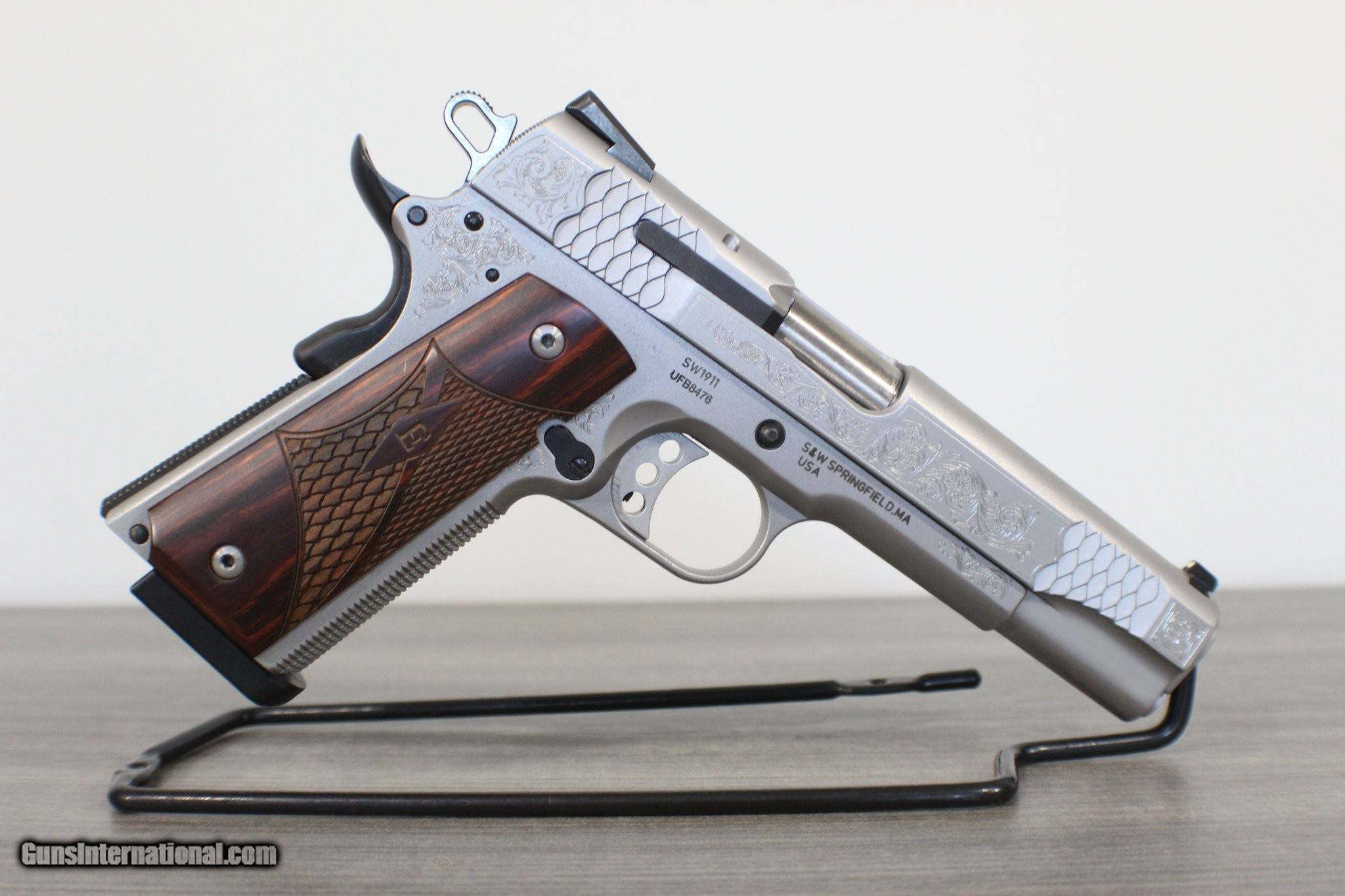 Description: Guns Listing ID: 575353 ChatGPT said: Smith & Wesson 1911 — .45 ACP — Used (Very Good) Up for sale is a used Smith & Wesson 1911 chambered in .45 ACP. This example is machine engraved and presented in very good condition — well cared for with normal, light handling wear consistent with use. Mechanically it functions as it should and the finish on the engraving remains attractive and crisp. This pistol is exactly as it would have come from the factory and includes all original packaging and factory items. KEY DETAILS Make / Model: Smith & Wesson 1911 Caliber: .45 ACP Condition: Used — Very Good Action: Single-action, semi-automatic Markings / Finish: Machine engraved (as pictured) Included: Original factory packaging and items (see “What’s Included") WHAT‚S INCLUDED Original factory box Owner’s manual / paperwork (where present) Any factory items that originally shipped with this pistol SOLD Manufacturer: SMITH & WESSON Model: USED10270U Caliber Info: .45 ACP Condition: Used - Non-Certified Barrels: 5" BARREL Action: SEMI AUTOMATIC Finish: ENGRAVED STAINLESS |