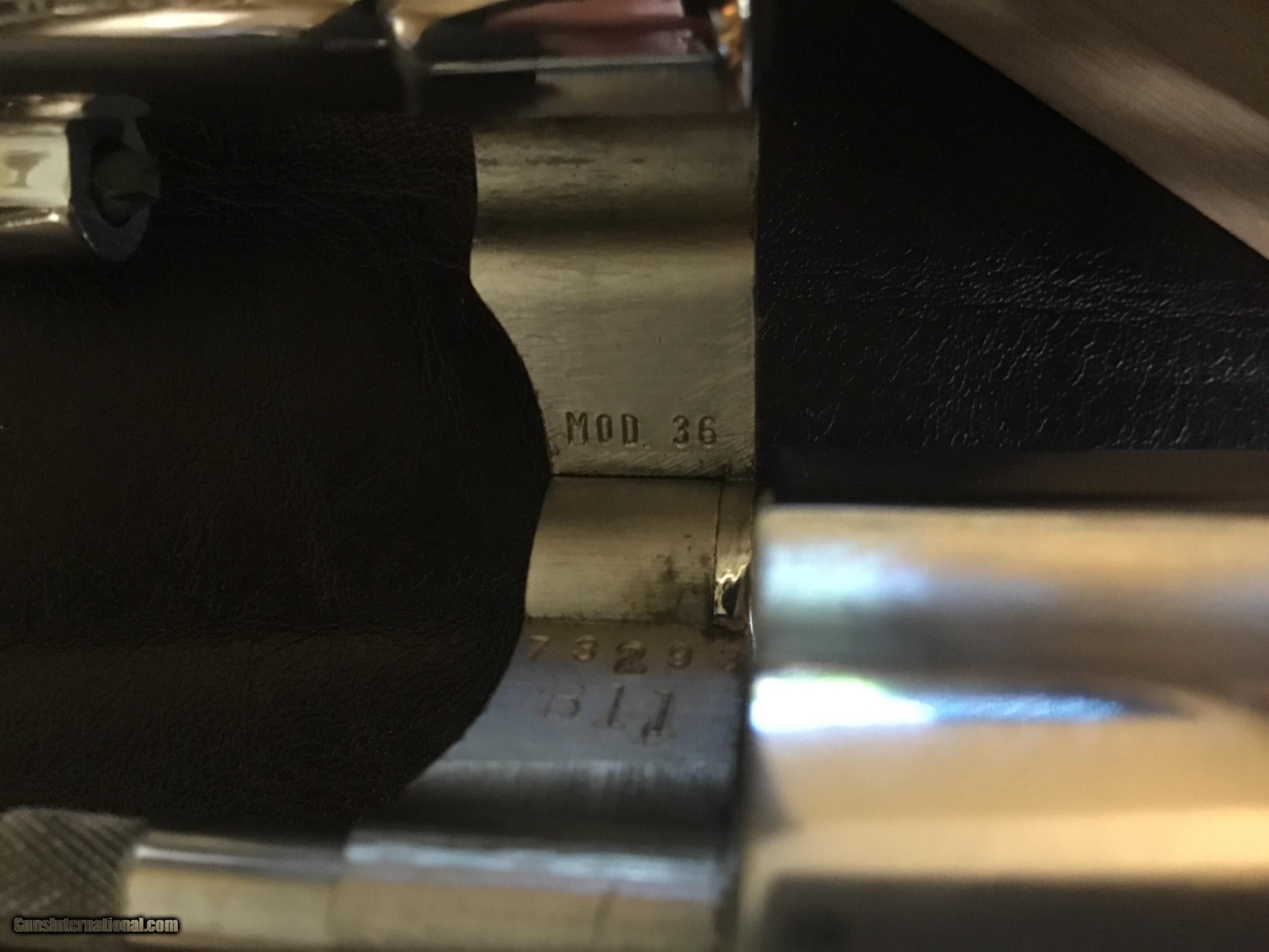 Description: Model 36. 38 spl. 2 inch Barrel This is the nicest one I seen is a long time. It would be a welcome edition to any collection. It has just a couple of light marks, nothing to take away from it’s beauty.7 SOLD Manufacturer: Smith & Wesson Model: 36 Nickle Serial Number: 73293 Caliber Info: 38 spl Bore: Excellent Condition: Excellent Barrel Type: 2 Inch Action: Double action Stock: Walnut Finish: Nickle |
