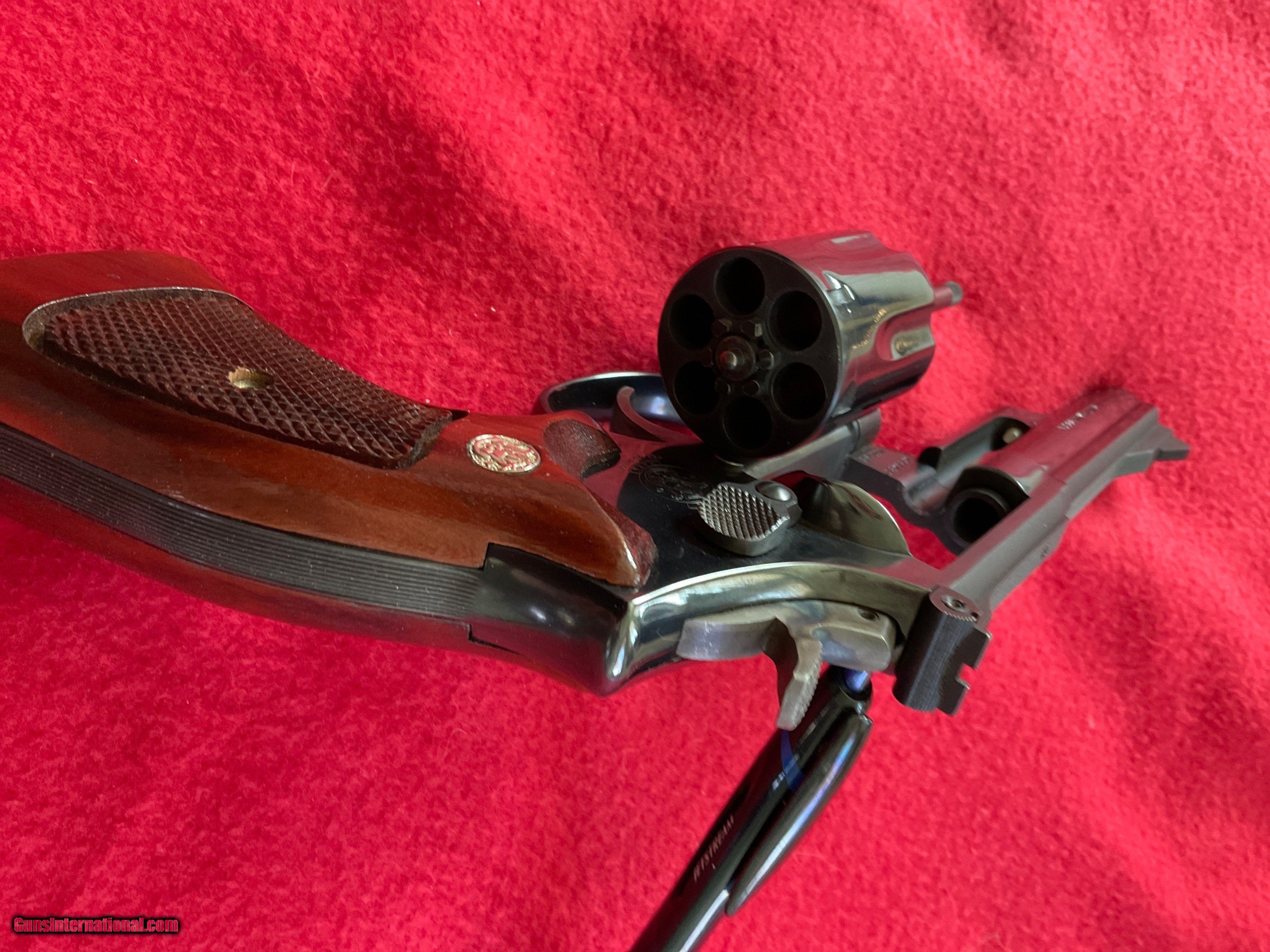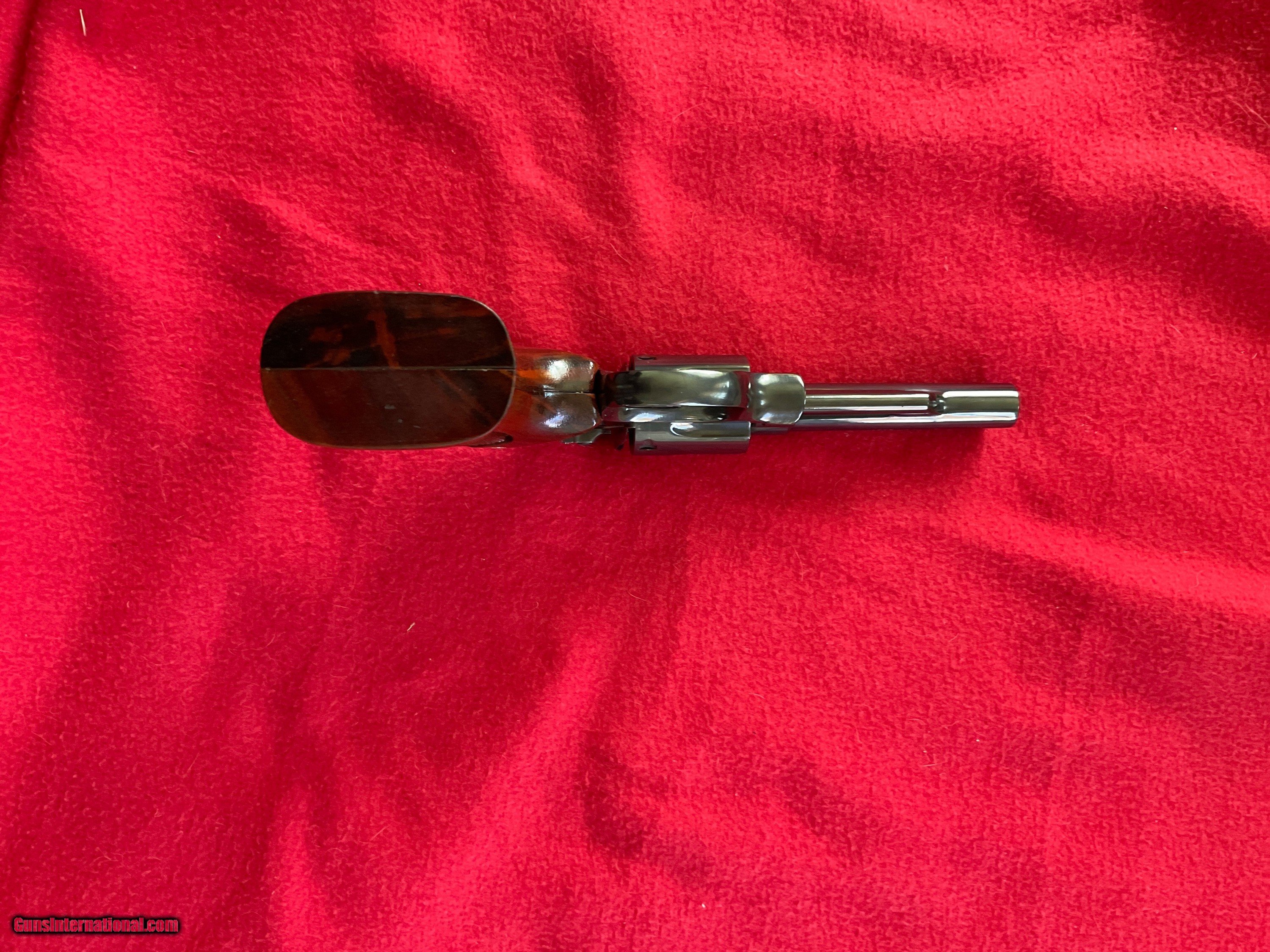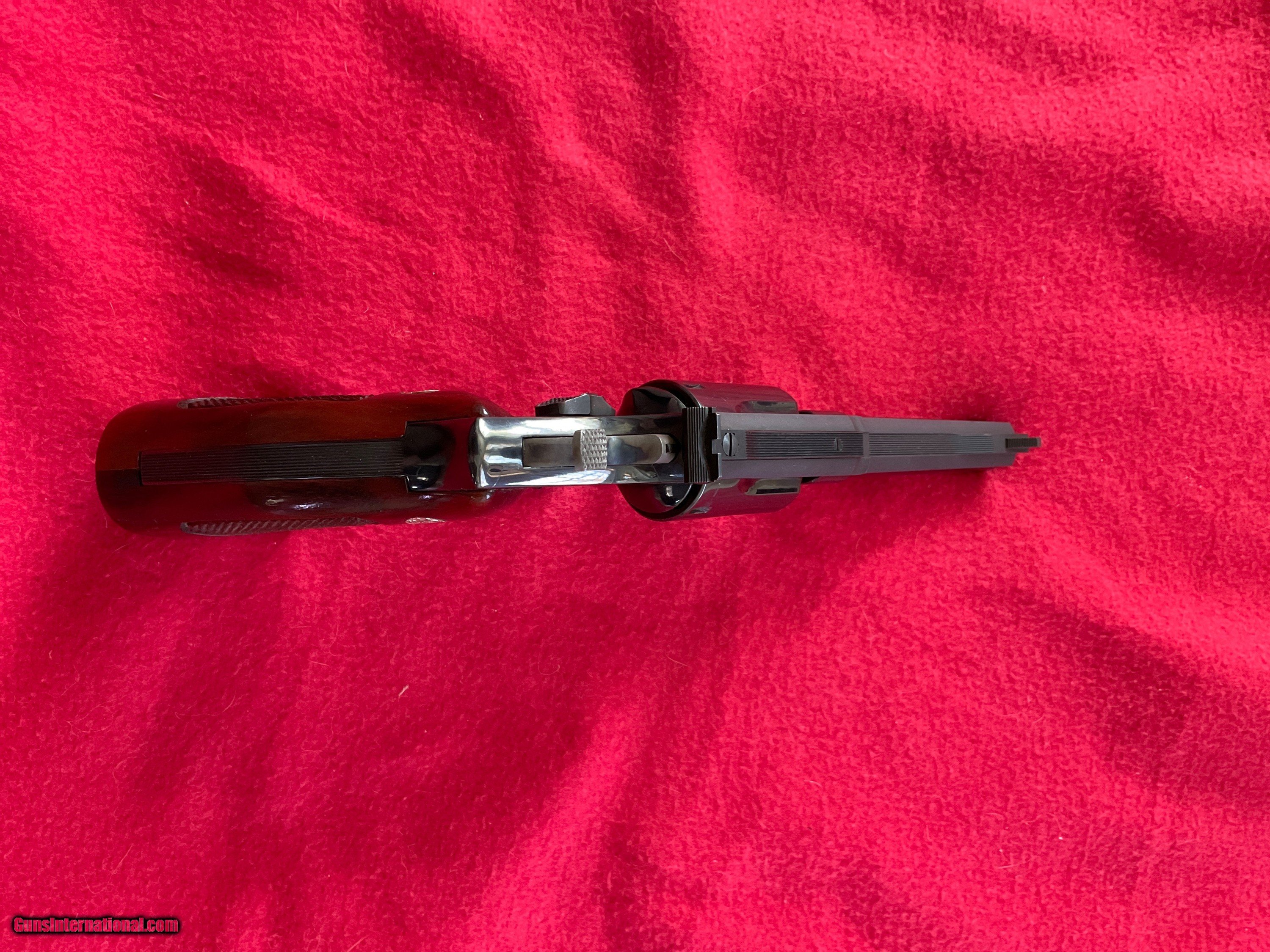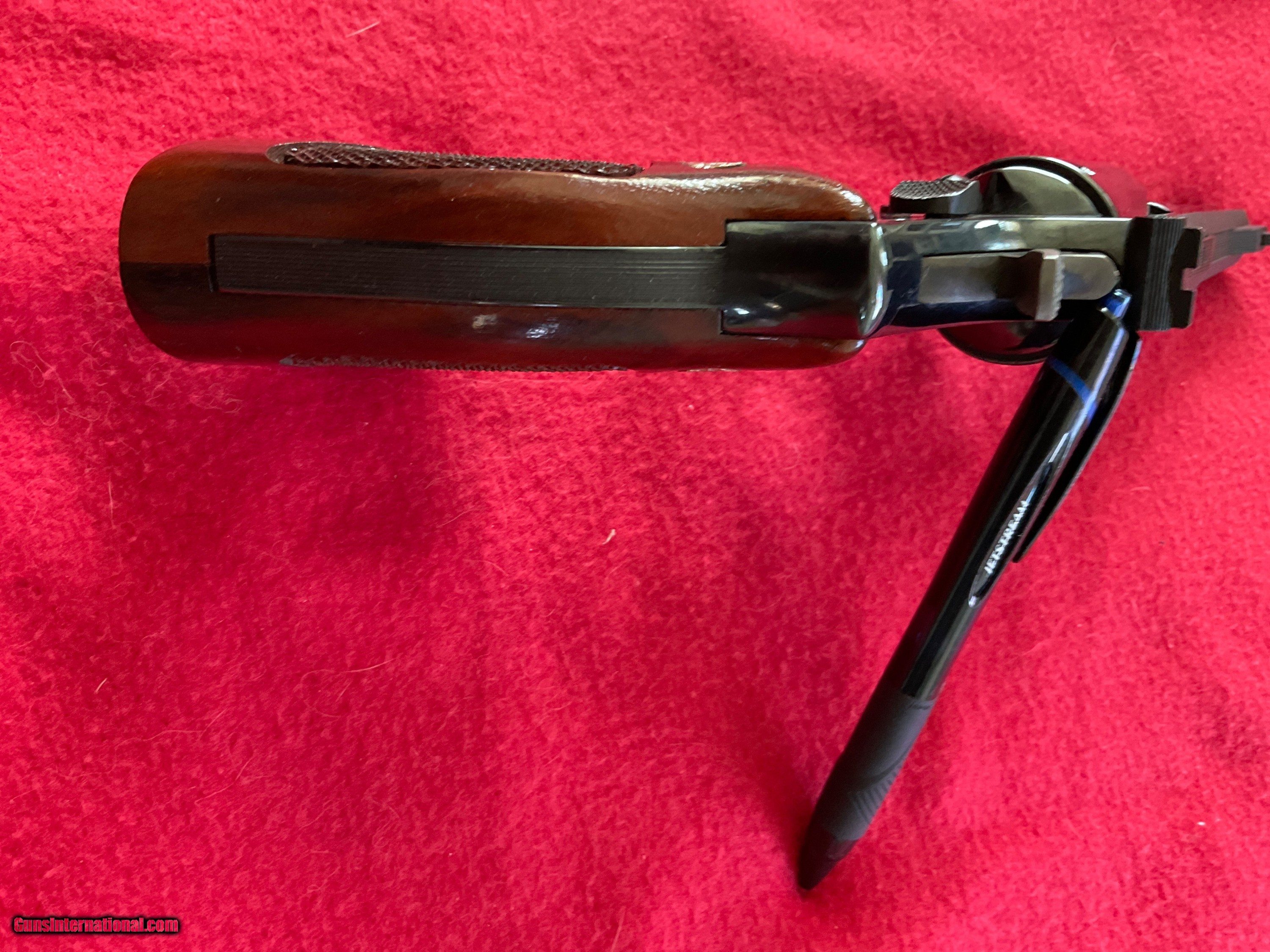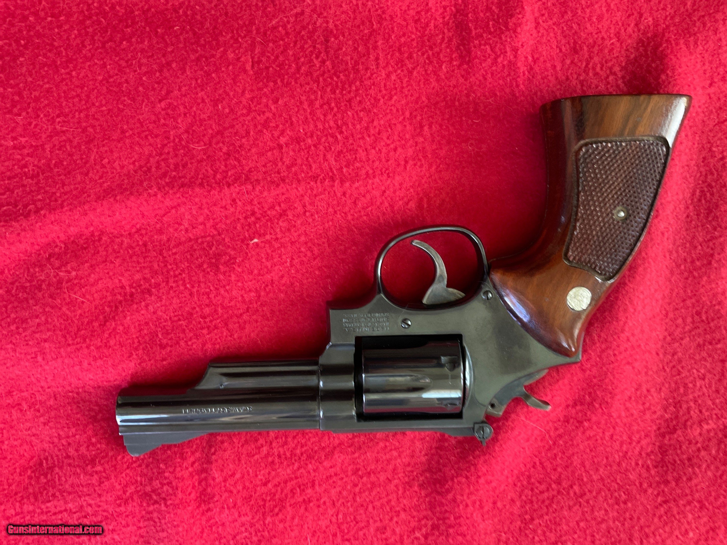 Description: S&W Model 19-5 4 inch, 357 Magnum, will also shoot 38 Specials. Target grips, no target hammer or trigger. The Model 19 is made on the K frame and sports adjustable sights. No box, gun shows some wear, overall a very clean Model19. SOLD Handgun Caliber: .357 Magnum Manufacturer: Smith and Wesson Model: 19 Barrel Length: 4 inch Condition: Clean Metal Condition: Clean Wood Condition: Clean Bore Condition: Good |