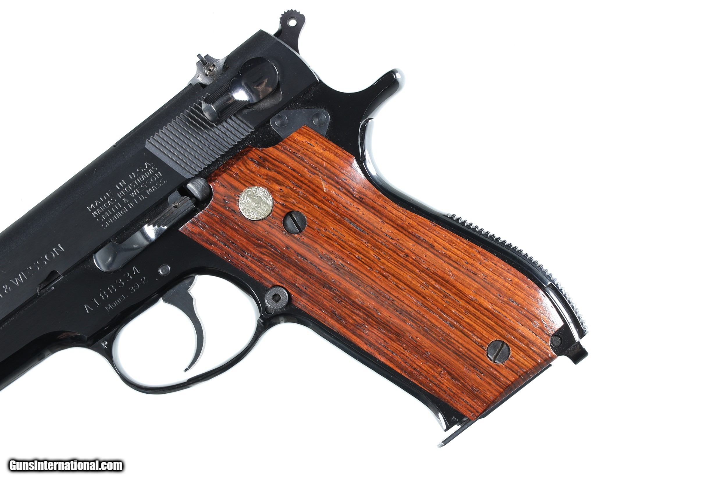Description: Excellent plus overall condition. Manufactured in 1973. With original box and an extra magazine. • Free Shipping, No Credit Card Fees. • Lay-a-way available for this firearm. • 1/3 Down, a 1/3 in 30 Days 1/3 in 60 Days. SOLD Manufacturer: Smith & Wesson Model: 39-2 Serial Number: A188334 Barrel Length: 4 |