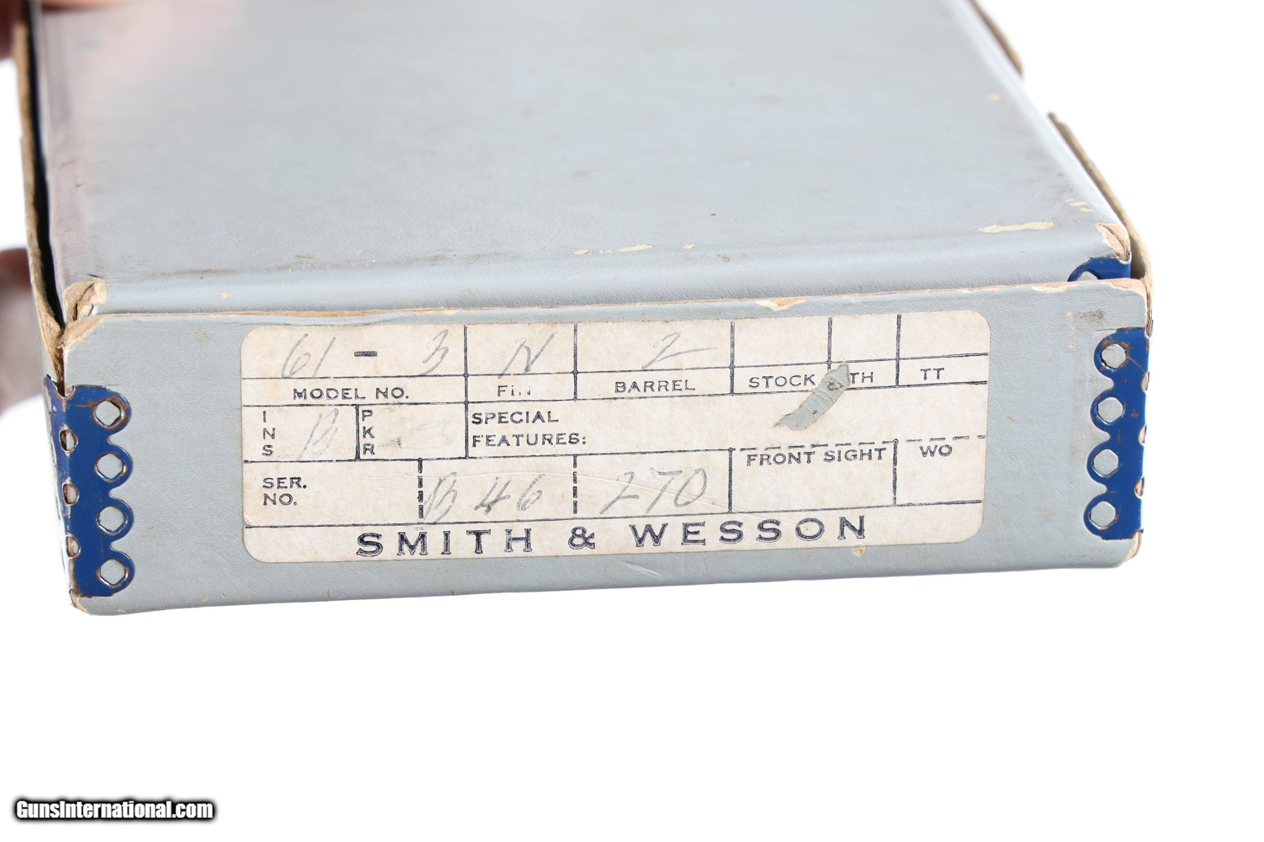 Description: Excellent plus overall condition, slight clouding to nickel finish. Manufactured 1971-1973. With original box and factory soft case. • Free Shipping, No Credit Card Fees. • Lay-a-way available for this firearm. • 1/3 Down, a 1/3 in 30 Days 1/3 in 60 Days. SOLD Manufacturer: Smith & Wesson Model: 61-3 Serial Number: B46270 Barrel Length: 2 |