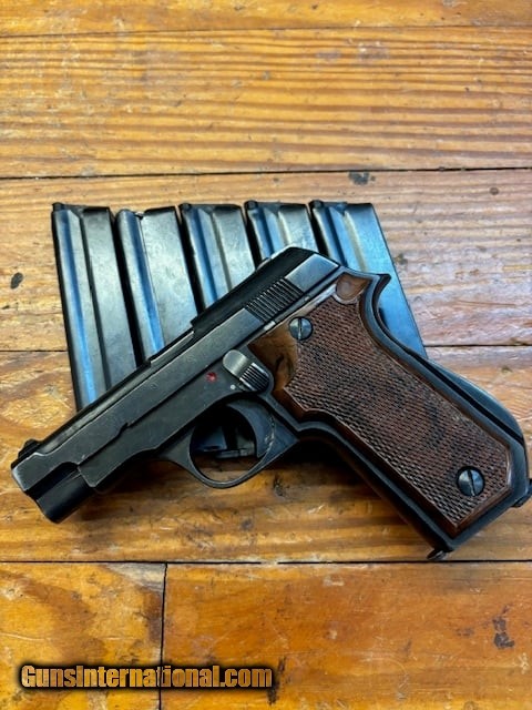 Description: Guns Listing ID: 1302833 This is an extremely nice example of a French Unique Model 52 semi-automatic .22 LR pistol. All-steel construction with brown bakelite grips, has very clean rifling. Comes with an astounding 5 spare 10rd magazines. Will be a super fun pistol to take the range, and it has a really crisp single-action trigger. SOLD Manufacturer: UNIQUE ARMES FRANCE Model: Model 52 - 6 Mags Caliber Info: .22 LR Condition: Used - Non-Certified Barrels: 3 BARREL Finish: BLUED |