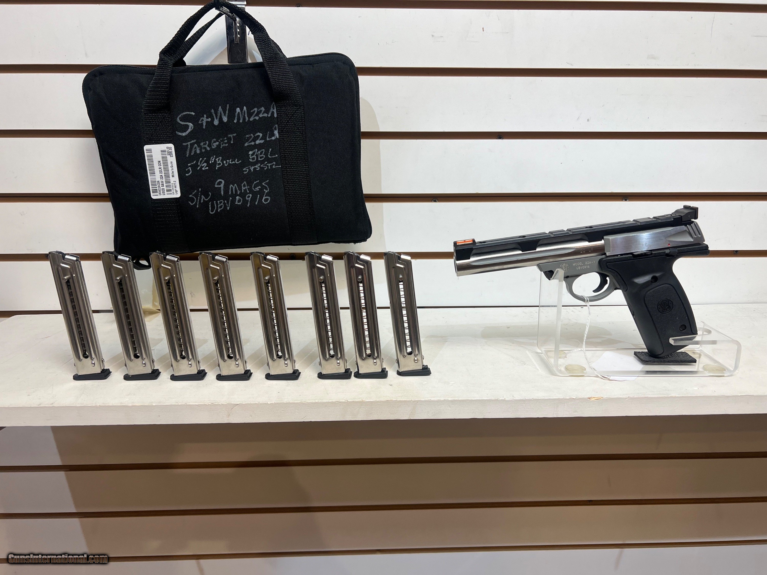 Used S&W 22A 22LR 5..5" bbl SS 9 10 rnd mags range bag good condition