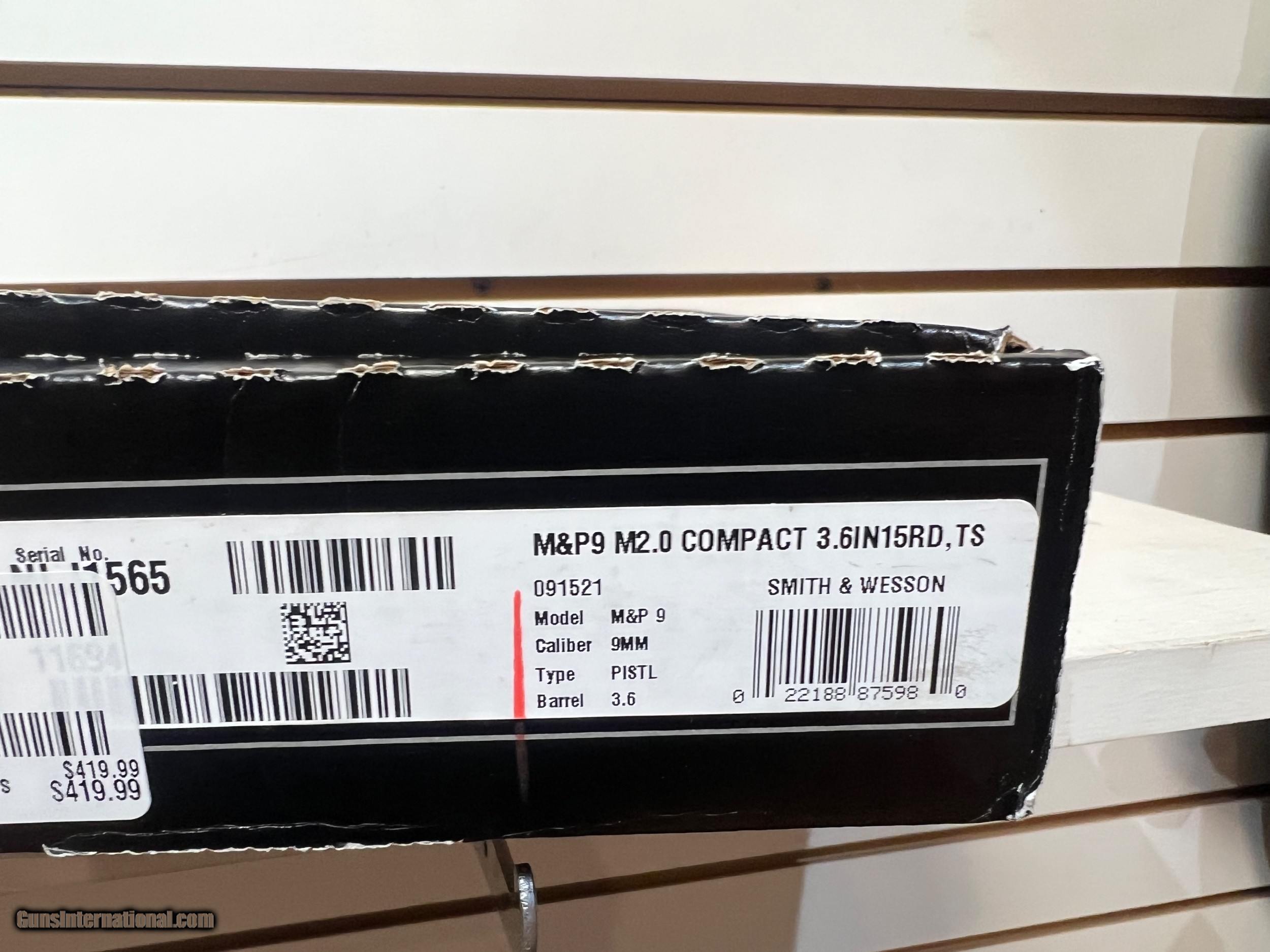 Used S+W M+P M2.0 CMPT 9MM 15R B FS original box 2 mags original box grip adjusters good condition
