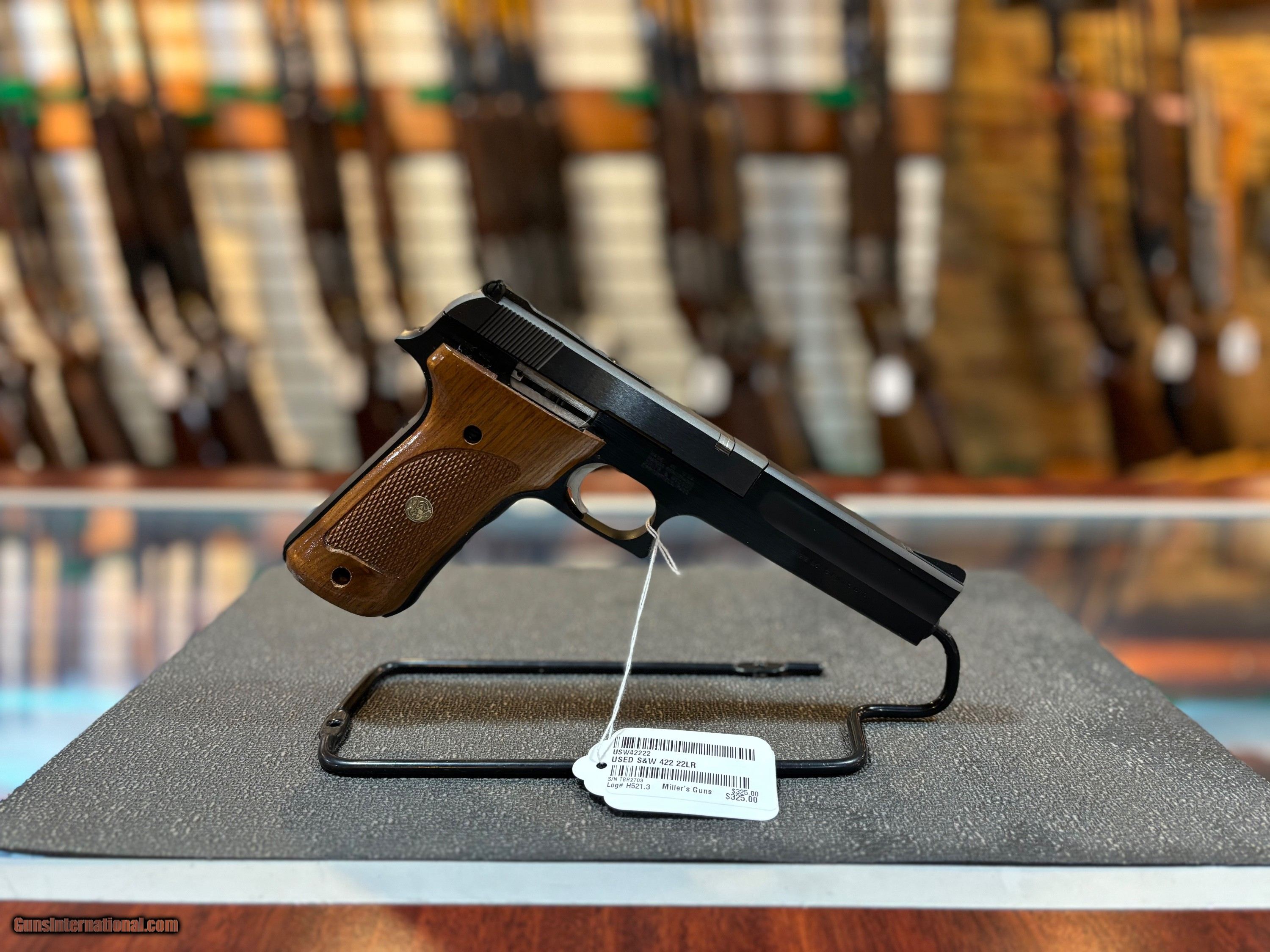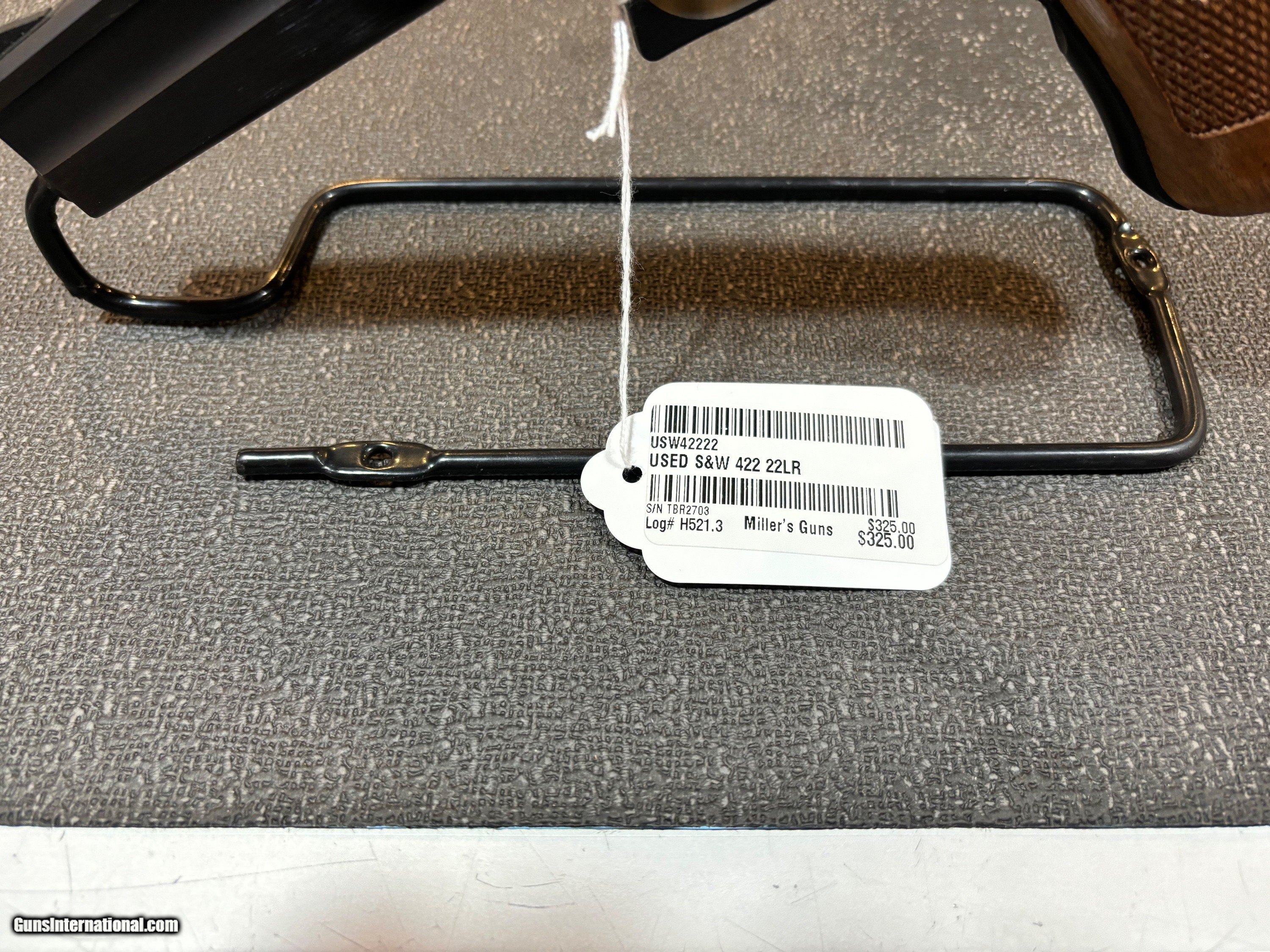 Description: USED Smith and Wesson 422 .22lr 6" barrel 10 round capacity (2) magazines included No box/manual Holster included SOLD Handgun Caliber: .22 Long Rifle Manufacturer: Smith and Wesson Model: 422 Serial Number: TBR2703 Condition: Good |