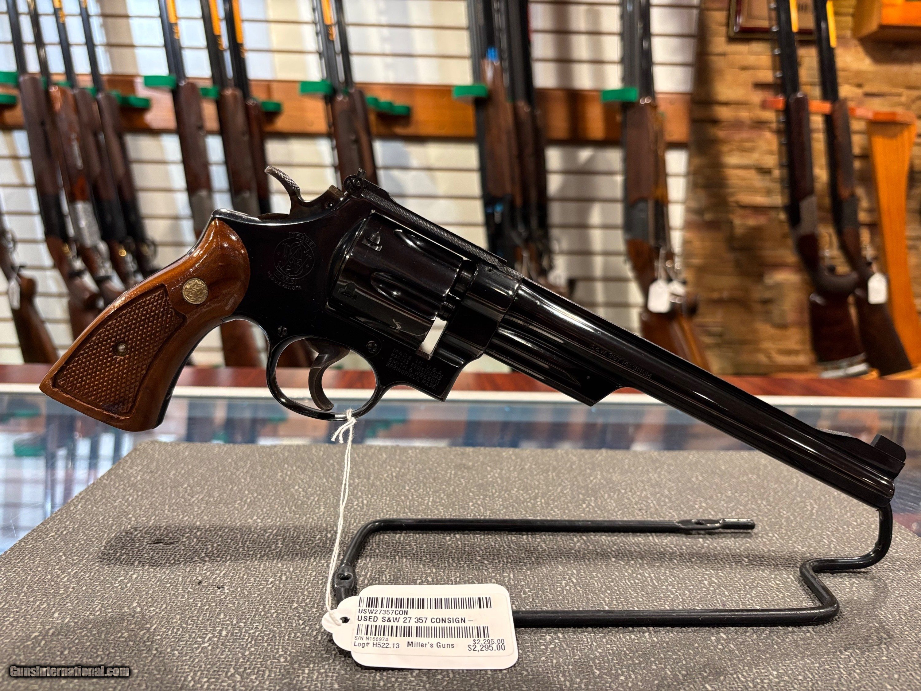 Description: USED Smith and Wesson Model 27 NEVER FIRED .357 Magnum 6 round capacity 8 3/8" barrel DA/SA Factory wood case, sleeve, all literature, rod included ***Extra grips can be purchased for ADDITIONAL $200.00. They are dated coded original grips.*** Handgun Caliber: .357 Magnum Manufacturer: Smith and Wesson Model: 27 Serial Number: N166974 Barrel Length: 8 3/8 Condition: EXCELLENT Price: $2,295.00 Contact Seller |