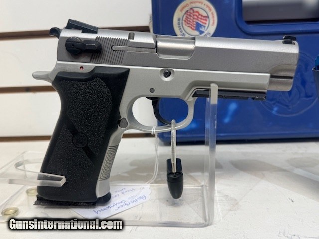 Description: Used Smith & Wesson Model 4003TSW 3 Mags, Box 40 S&W Length:7.5-in Barrel: 4-in Weight: 28.5-oz Gun SpecificationsType:Pistol Produced:2000 - 2004 Caliber:.40 S&W Action:recoil operated semi-automatic Trigger:double-action (DA/SA) Safety:slide mounted ambi safety/decocker Magazine:10-round Frame:aluminum alloy Grip:straight backstrap wrap-around Sights:Novak Lo-Mount Notes:stainless slide, accessory rail Buyer pays shipping Millers Gun Center Located in New Castle, Delaware "Home of TAX-Free shopping" No Credit Card Fees Send Gun international inquiry and then call 302-328-9747 to complete your purchase SOLD Handgun Caliber: .40 Smith & Wesson (.40 Auto, 10 x 21 mm) Manufacturer: Smith & Wesson Model: 4003 TSW |
