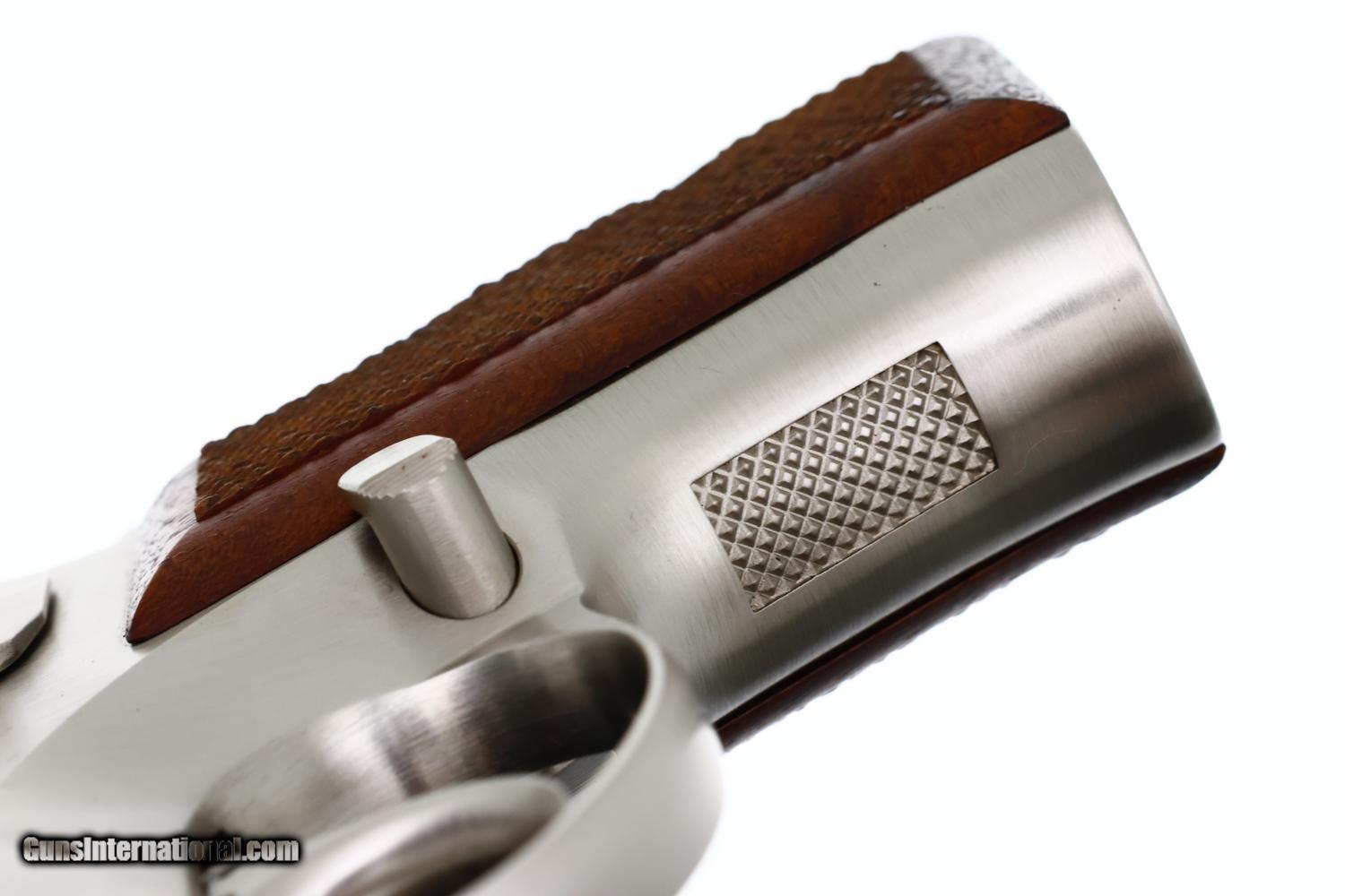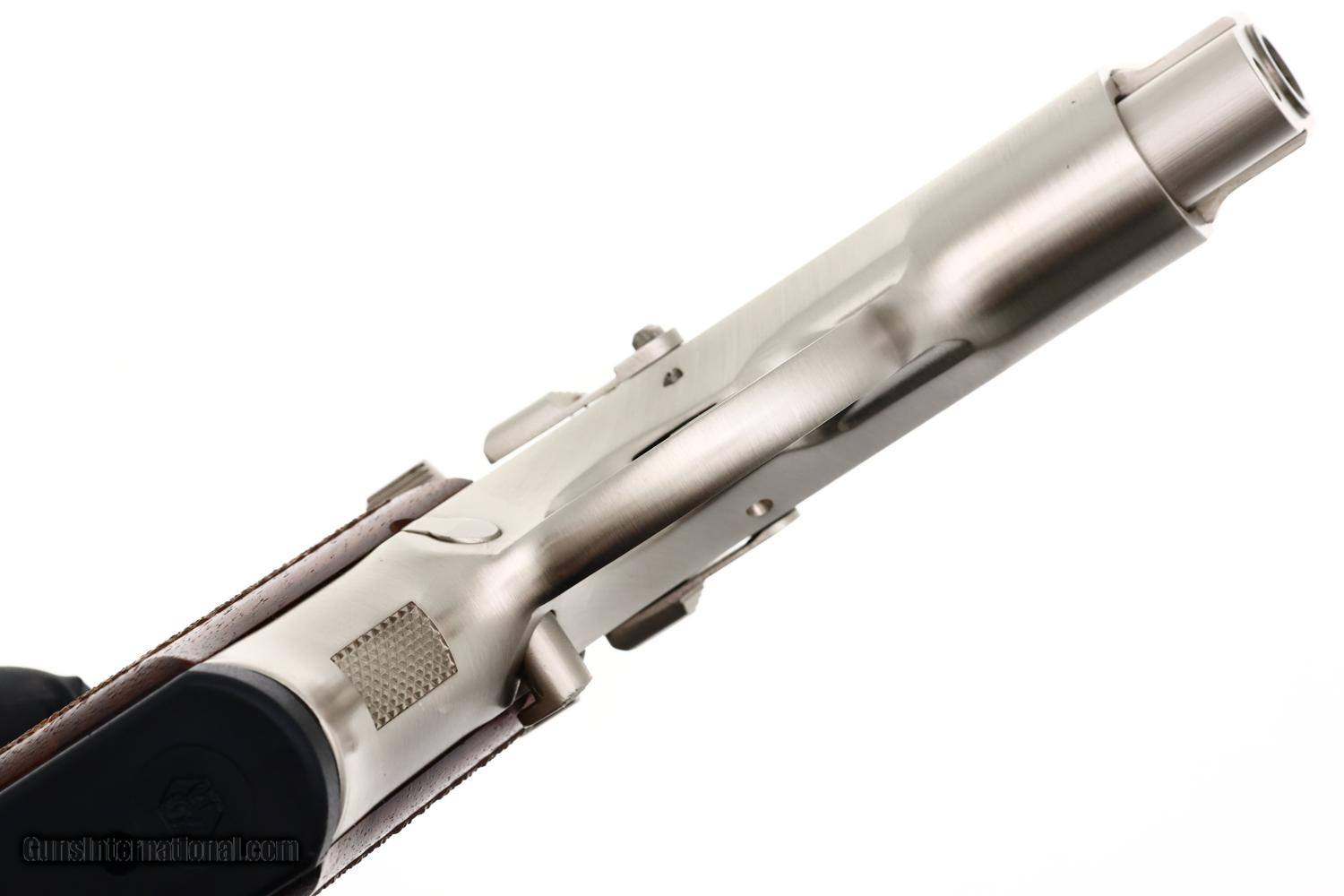 Description: Synopsis: This SPHINX AT2000H is stainless steel compact pistol made in Switzerland, cal. 9mmP, with a 3.5-inch barrel, ambidextrous controls to include slide release and decocker, near NIB with full complement of literature and accessories. Description: Beautiful SPHINX AT2000H semi-automatic stainless steel SA/DA compact pistol in 9mmP with 3.5-inch barrel, SN: B01015H, hand-fitted to tight tolerances rather than mass-produced, with brushed finish, as NIB The pistol has a fixed red dot front sight and drift adjustable rear sight. Ambidextrous safety and slide release. The left side of the slide marked "SPHINX 2000" over "SPHINX" with "MADE IN SWITZERLAND" and serial number "B 01015 H" engraved on the frame. The right side of barrel hood marked "9 PARA." with BP proof markings. Fitted with checkered brown wooden grips secured with slotted screws (spare set of blued grip screws) and includes two blued steel magazines with two indicator holes and removable floorplates. Complete with factory test target showing grouping, SPHINX branded documentation, warranty papers, cleaning tools and original shipping box including end label referencing the make, model and serial number. The AT2000H is one of many Sphinx pistols, all made in Switzerland, used by special forces, elite police units and sports shooters. Condition: EXC+, virtually new, showing only the most minor handling marks, mainly light scuffing at the top of the barrel hood from slide retraction. Grips are as new. Neither magazine shows any insertional wear. Mirror Bore. Correct manual mechanics. Plastic packet of cleaning implements never opened. Near excellent box. A wonderful AT2000H Sphinx as shipped from the factory! SOLD Manufacturer: Sphinx Model: AT2000H Serial Number: B01015H Caliber Info: 9mm Condition: As New |