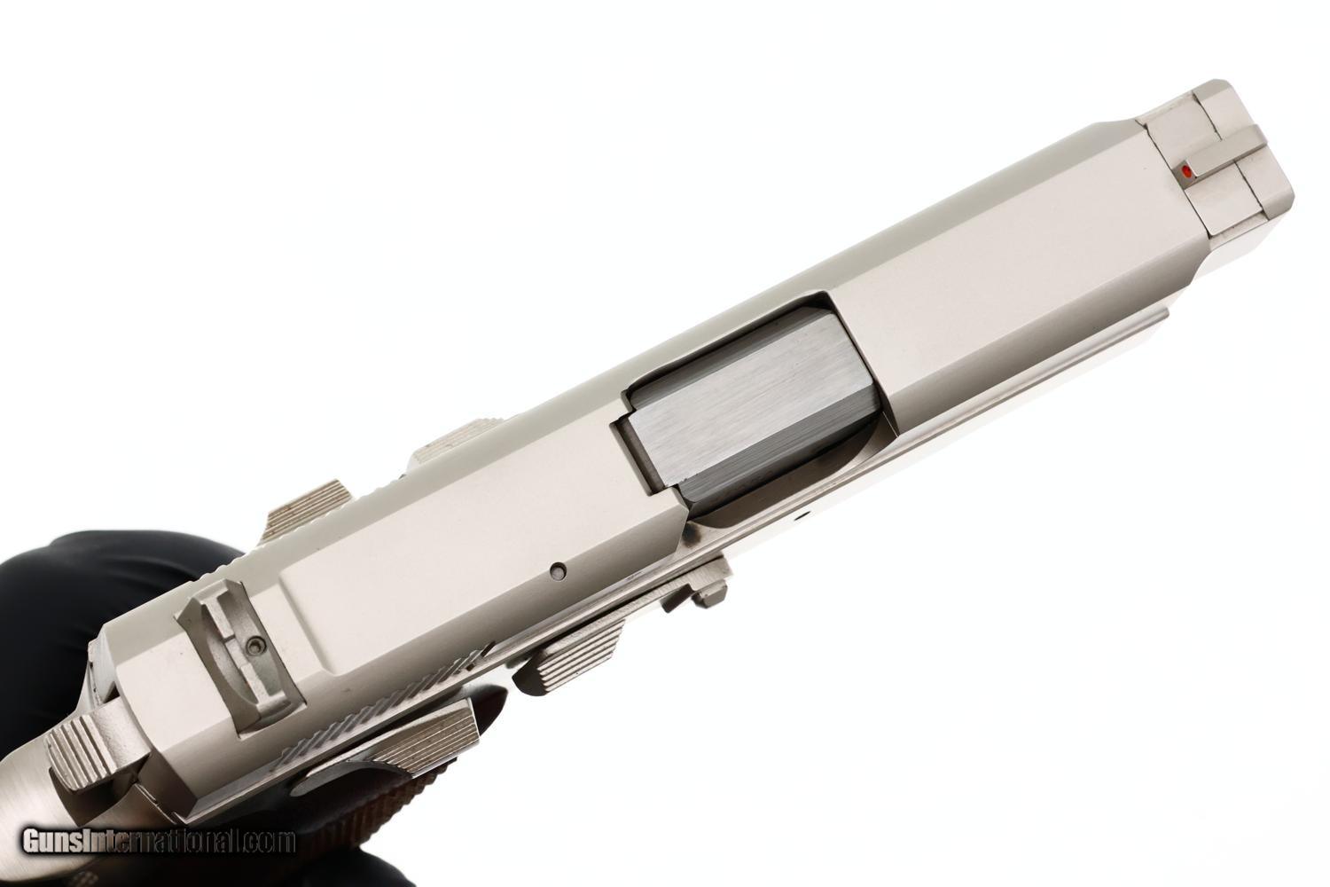 This SPHINX AT2000H is stainless steel compact pistol made in Switzerland, cal. 9mmP, with a 3.5-inch barrel, ambidextrous controls to include slide release and decocker, near NIB with full complement of literature and accessories.