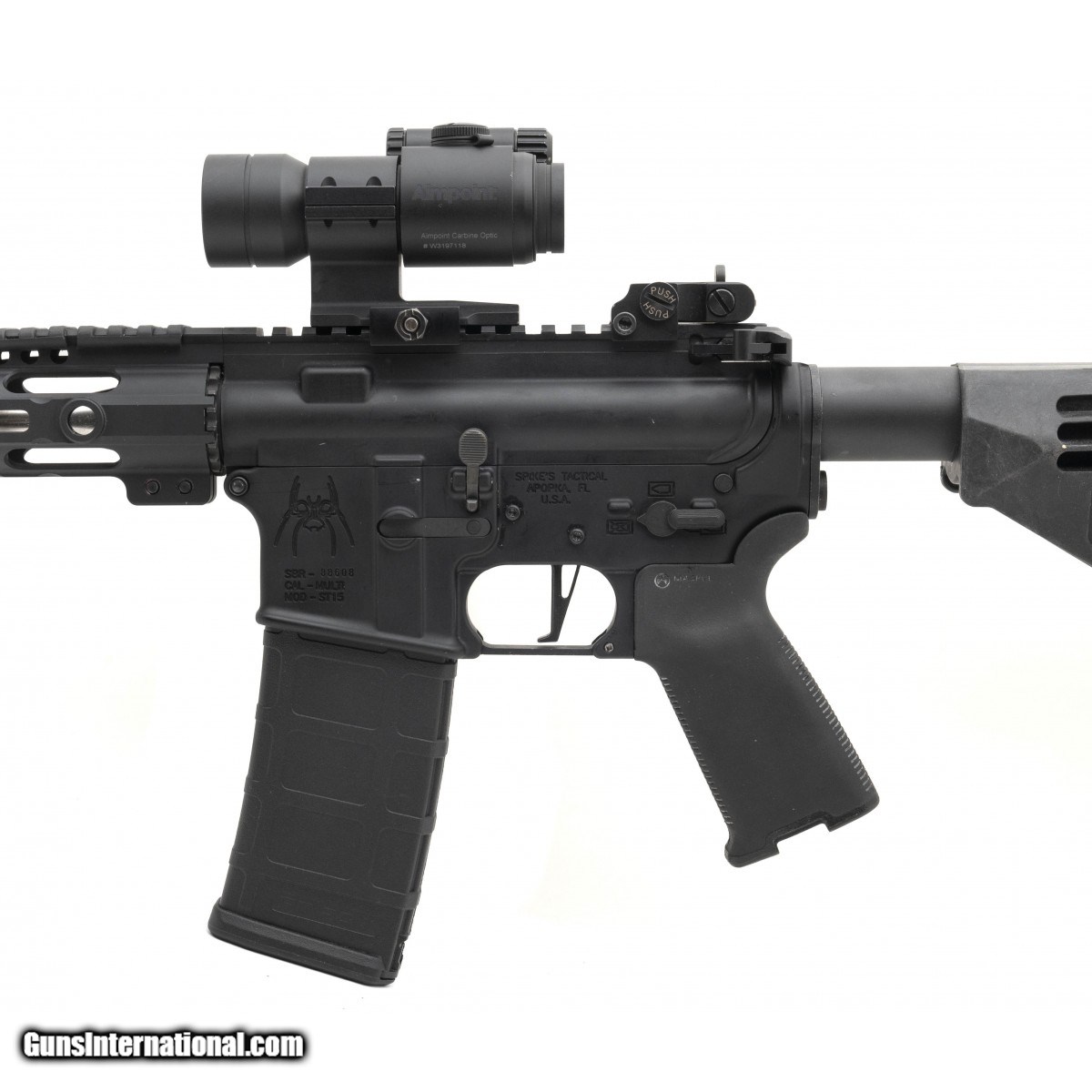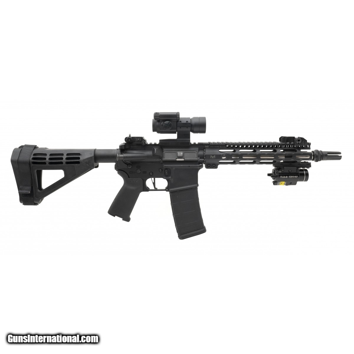 SN:SBR-88608. Tactical pistol with 11.5"" stainless barrel built on a Spike's Tactical ST15 lower. Has CMC flat trigger, Midwest Industries M-Lok rail, Aimpoint ACO, Troy BUIS, pistol brace and Streamlight TLR2. Overall very good condition.