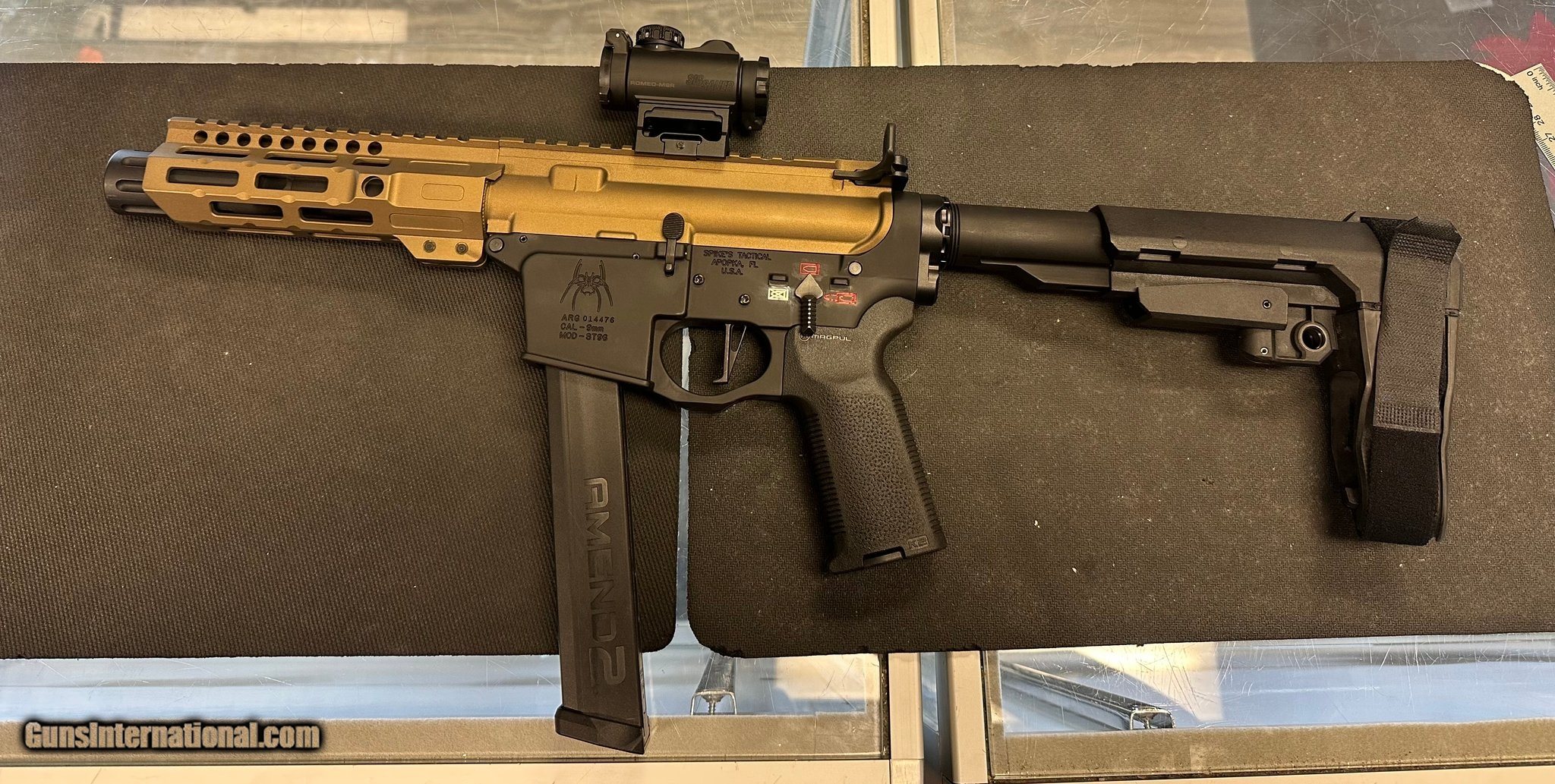 Description: Guns Listing ID: 545495 This spike’s tactical AR 9 is a semi automatic pistol chambered in 9 mm. This firearm is in excellent condition. Has upgraded trigger bolt and charging handle. Comes with 1 34 round magazine, SBA three adjustable brace, Sig Sauer Romeo MSR. SOLD Manufacturer: SPIKE‚‚S TACTICA Model: ST9G Caliber Info: 9MM LUGER (9x19 PARA) Condition: Used - Non-Certified Barrels: 7.5 BARREL Action: SEMI AUTOMATIC Finish: BLACK AND BRONZE |