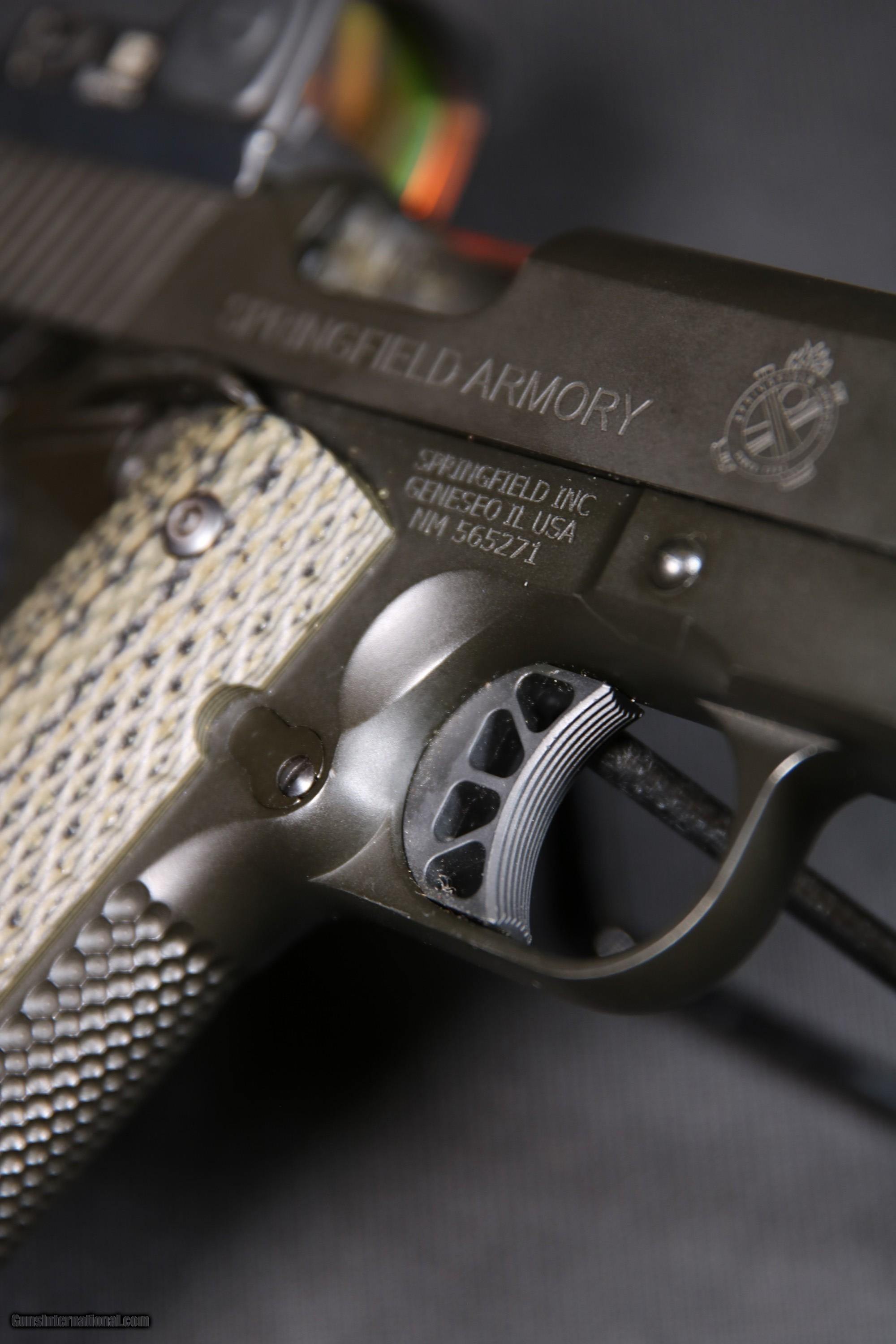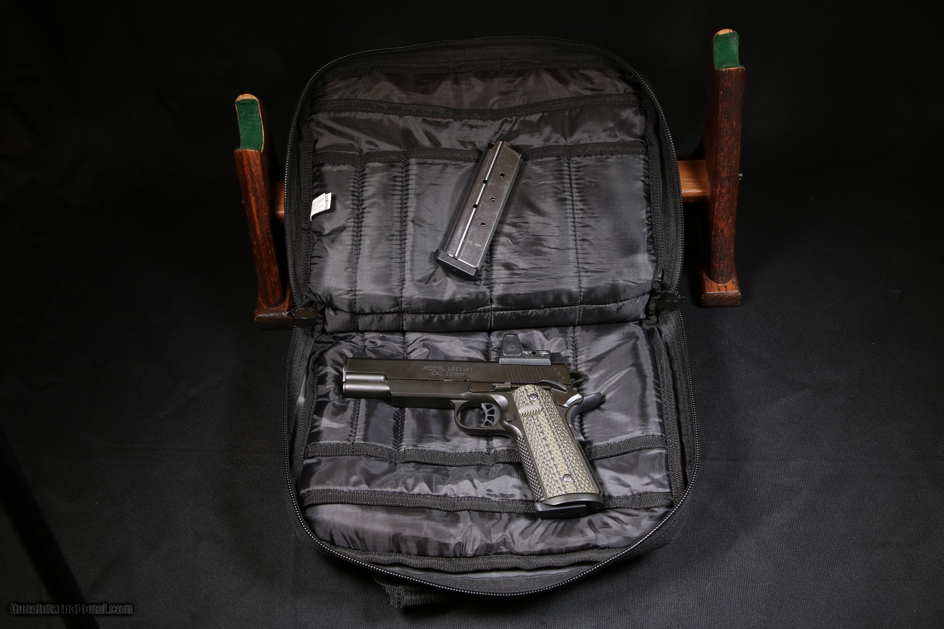 Description: The Springfield Armory TRP 10mm RMR with a 5” barrel is now available with a Trijicon Ruggedized Miniature Reflex (RMR) sight specifically milled into the slide of Springfield Armory’s most elite production 1911. Springfield Armory chose Trijicon, the proven leader in rugged red-dot optics, for its ability to stand up to the power of the formidable 10mm round. The sight is crafted from 7075-T6 aluminum to mil-spec standards and has a patented shape that absorbs impacts and diverts stresses away from the lens, increasing durability. This item comes with a soft case and 2 magazines. Overall condition is great with little wear to the frame. Pre-Owned - Springfield 1911-A1 TRP 10mm 5" w/Trijicon RMR Reflex Sight