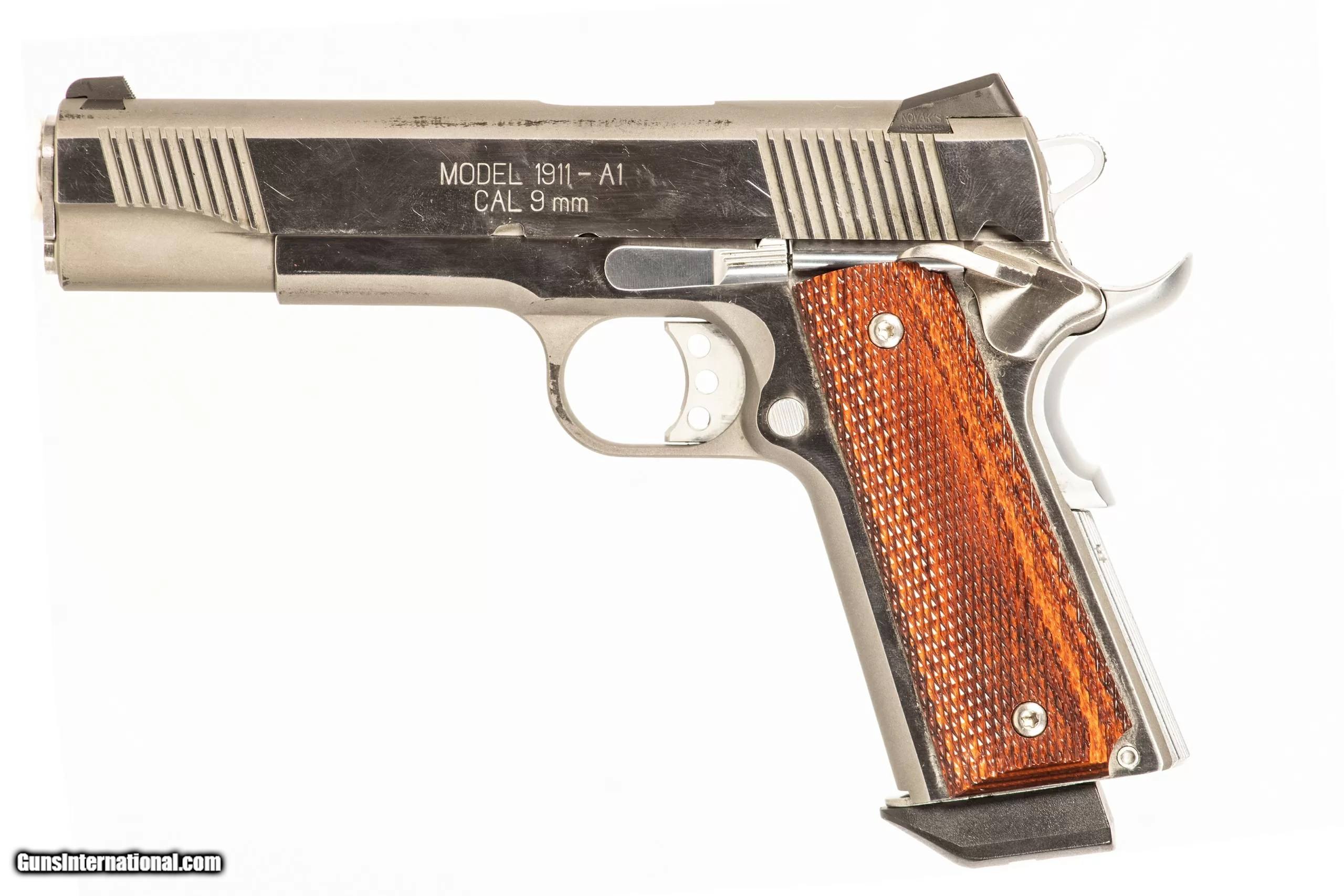Description: Springfield Armory 1911-A1, chambered in 9mm. This pistol has a 5 1/16 inch barrel featuring a bright bore and sharp rifling. The gun also comes with a case and 1 extra magazine. The NRA grading condition for this USED firearm is Good. Dury's Lifetime Warranty: All firearms purchased from Dury’s Gun Shop, NEW or USED, are covered by a lifetime warranty. We will repair or replace, at our discretion, any firearm purchased from Dury’s Gun Shop, Inc. for as long as it is owned by the purchaser. This warranty is not transferable. WE BUY GUNS! NO COLLECTION TOO BIG OR SMALL FOR OUR GUNS INTERNATIONAL CUSTOMERS ALL OF OUR FIREARMS CAN BE PURCHASED DIRECTLY FROM OUR DURY'S GUNS SITE ! SOLD Manufacturer: Springfield Model: 1911-A1 Caliber Info: 9 mm Barrels: 5inches |