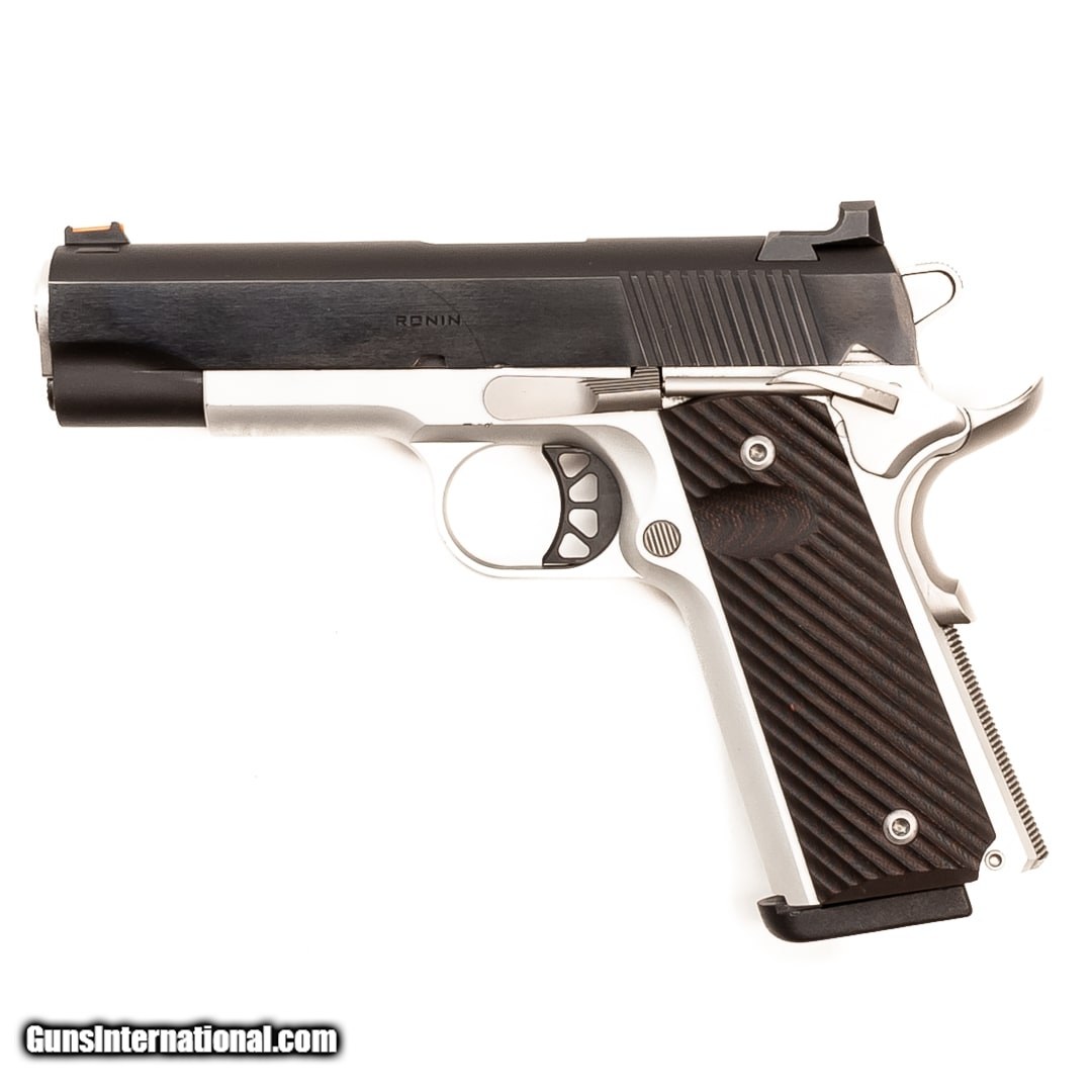 Description: Guns Listing ID: 855014 The Springfield Armory Ronin is a fine example of how the 1911 has morphed into an even better platform over the years. It is the ideal sidearm for tactical applications but will still make a fantastic target shooter and range toy too. Some things never go out of style, and that‚‚s always the case with a well-built 1911. This Ronin is equipped with a safety. Purchase includes the original box, soft case, owner‚‚s manual, three 9-round magazines, two 10-round magazines, and extra grips. Get the best bang for your buck when you get a Certified Used Firearm . When you see the Certified Used stamp on any of our firearms, you can be confident that you’re getting exactly what you want – a gun only in very good to excellent condition and held to the highest quality standard. All Certified Used Guns come with a ‘no questions asked’ return policy . PLUS, ALL CERTIFIED USED GUNS SHIP FRE SOLD Manufacturer: SPRINGFIELD ARMORY Model: RONIN Caliber Info: 9MM LUGER (9X19 PARA) Condition: Used - Certified Barrels: 4.2 BARREL Finish: BLACK |