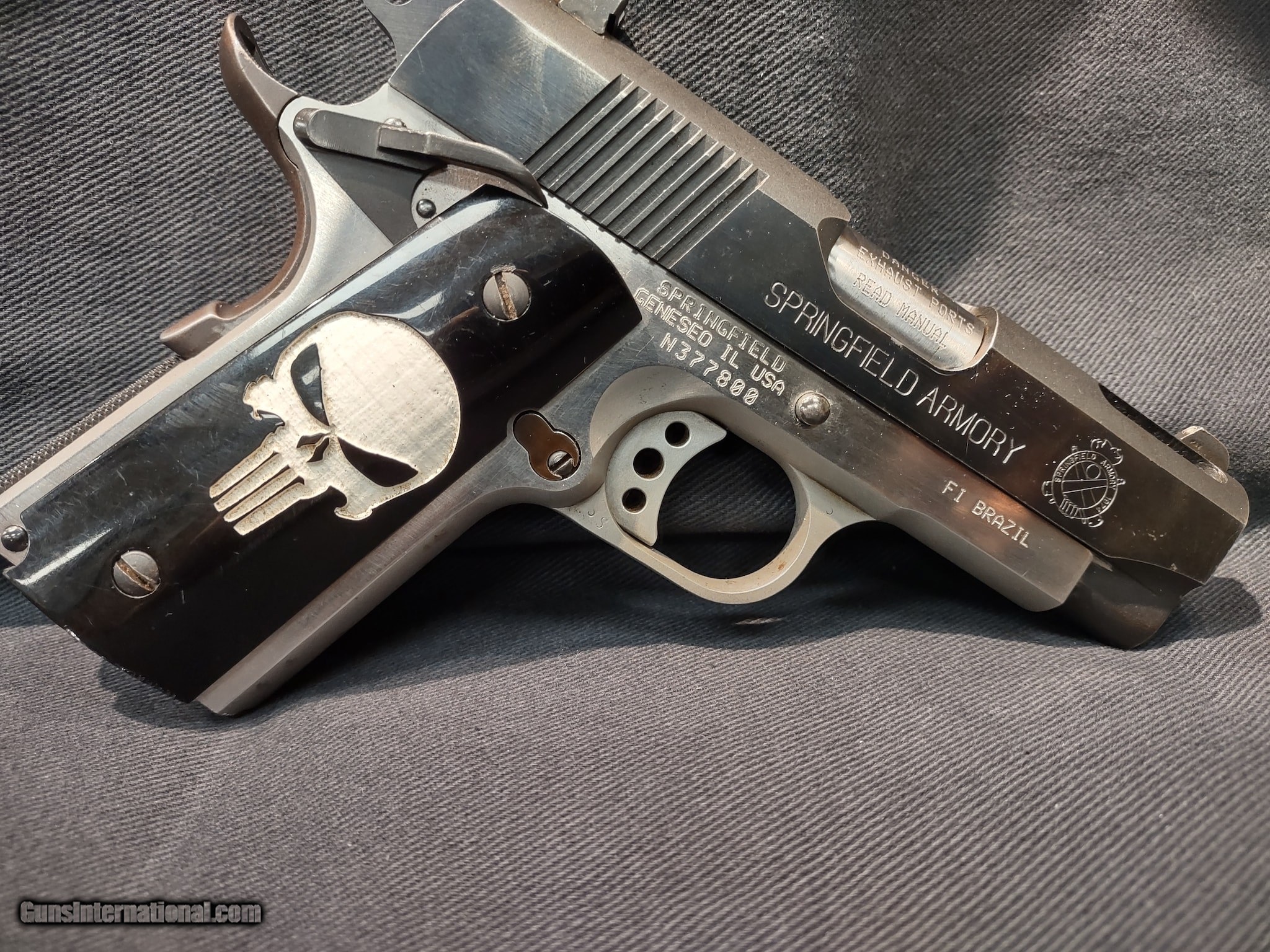 Description: Guns Listing ID: 344462 Springfield Armory V10 Ultra Compact 1911 .45acp 3.5\" ported barrel, 1-7rd mag, Steel frame, Punisher skull grips, no box. SOLD Manufacturer: SPRINGFIELD ARMORY Model: V10 Ultra Compact Caliber Info: .45 ACP Condition: Used - Non-Certified Barrels: 3.5 BARREL Action: SEMI AUTOMATIC Finish: TWO TONE BLACK AND STAINLESS Weight: not specified |