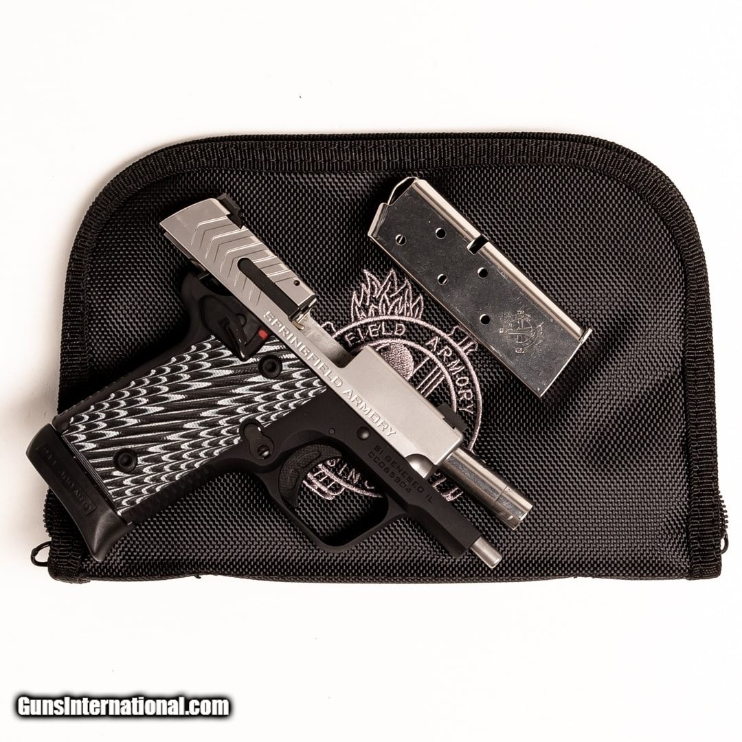 Description: Guns Listing ID: 569068 The Springfield Armory 911 is a compact personal protection handgun that is based off the iconic 1911. It is chambered in .380 ACP and perfectly suited for daily carry. This handgun features night sights, G10 grips, one 7-round magazine, one 8-round magazine, and the orignal case with the manual. SOLD Manufacturer: SPRINGFIELD ARMORY Model: 911 Caliber Info: .380 ACP Condition: Used - Certified Barrels: 2.7 BARREL Finish: TWO-TONE STAINLESS |