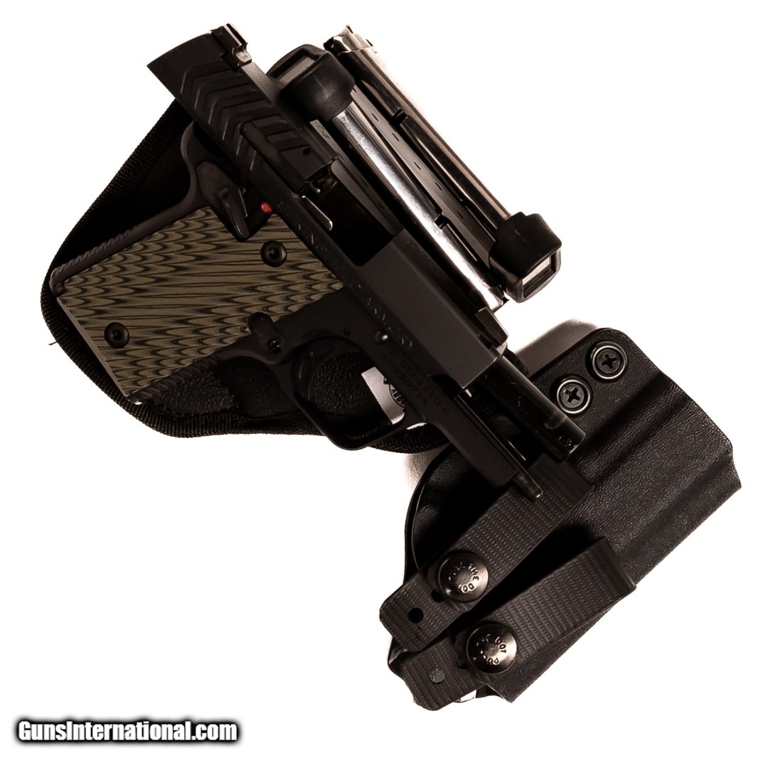 Description: Guns Listing ID: 735500 In the eyes of many, the 1911 is the standard of self-defense handguns. The Springfield Armory 911 took the industry standard and scaled it down to an easily concealable, daily carry variant of America‚‚s Pistol. This 911 is equipped with a safety and Hi-Viz night sights. Purchase includes the original box, soft case, owner‚‚s manual, one 6-round magazine, two 7-round magazines, a right-handed OWB holster, and a pocket holster. Get the best bang for your buck when you get a Certified Used Firearm . When you see the Certified Used stamp on any of our firearms, you can be confident that you’re getting exactly what you want – a gun only in very good to excellent condition and held to the highest quality standard. All Certified Used Guns come with a ‘no questions asked’ return policy . PLUS, ALL CERTIFIED USED GUNS SHIP FRE SOLD Manufacturer: SPRINGFIELD ARMORY Model: 911 Caliber Info: 9MM LUGER (9X19 PARA) Condition: Used - Certified Barrels: 3 barrel Finish: BLACK |